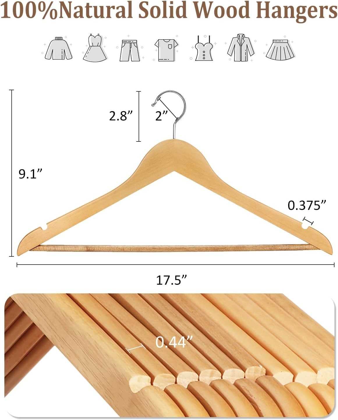 Premium Wooden Hangers 20 Pack Wood Suit Hangers Non Slip Wooden Coat Hangers