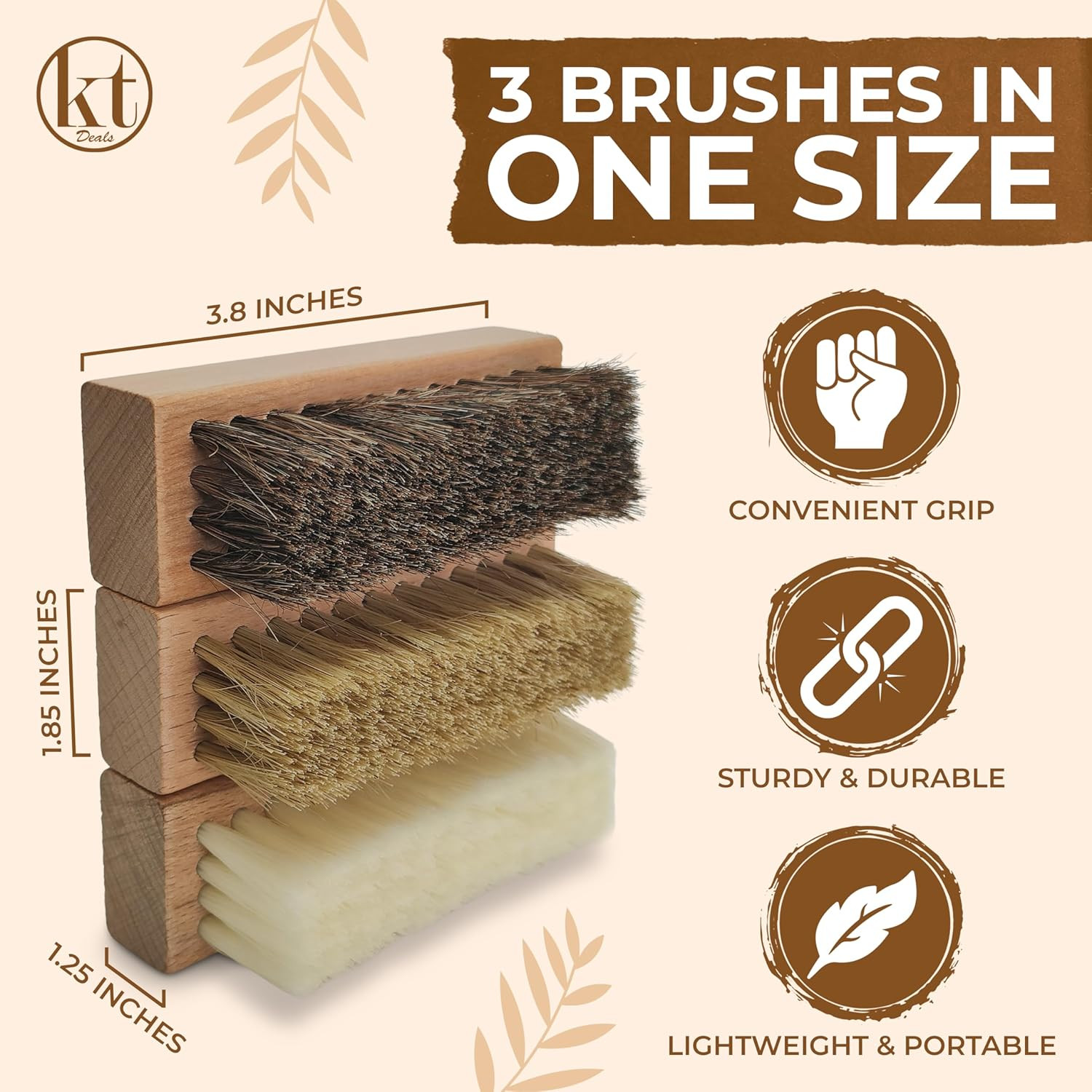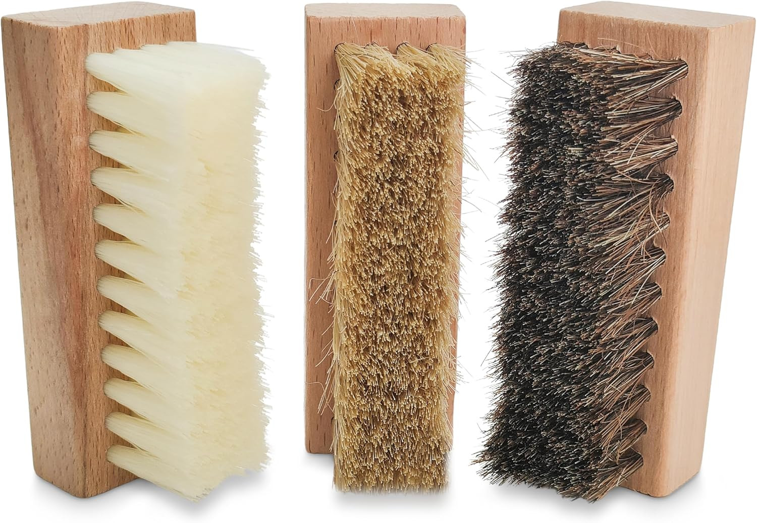 Small Shoe Cleaning Brush Set of 3 Brushes with Nylon, Boar and Horsehair