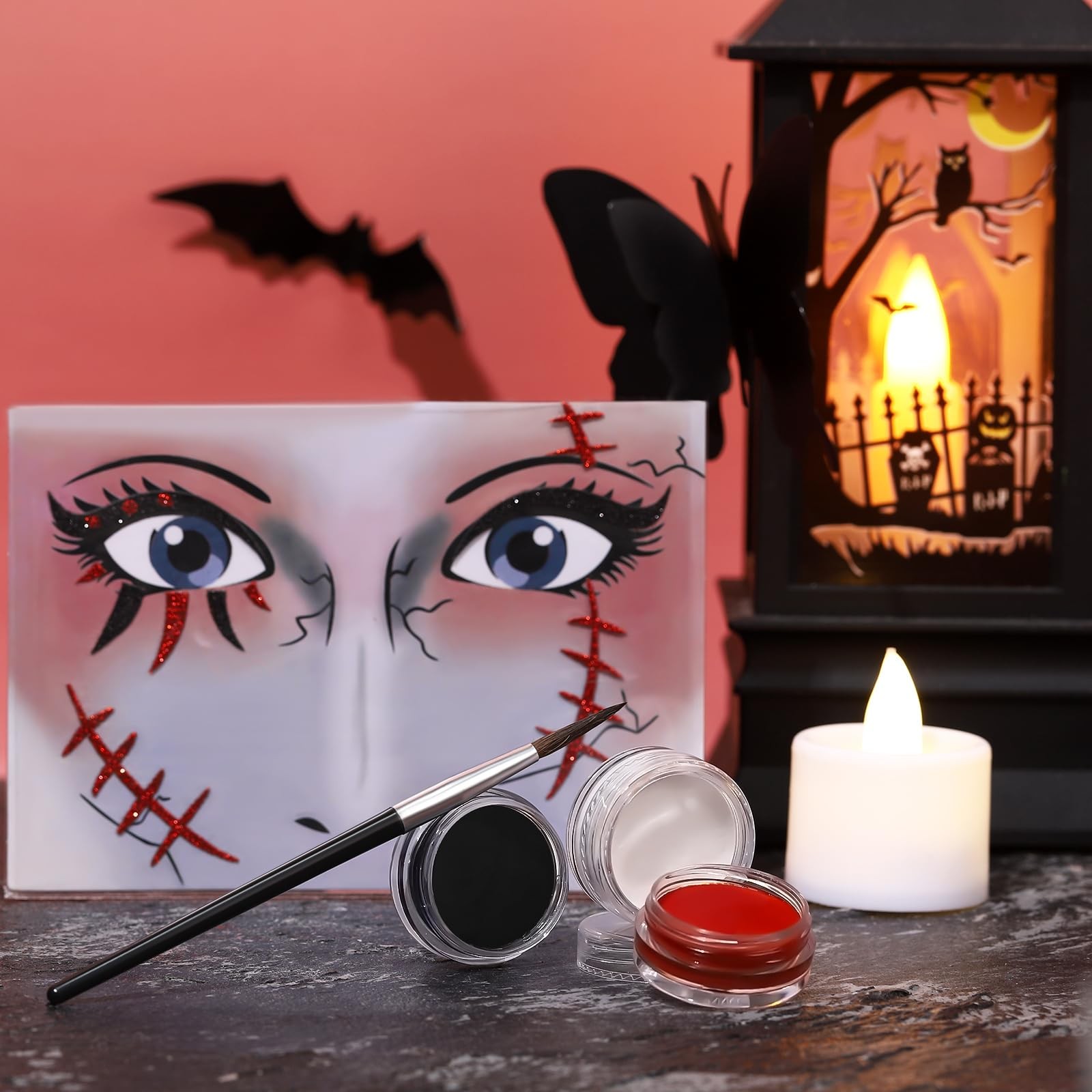 White Black Red Face Paint Clown Sorceress Halloween Makeup Clown/Sorceress
