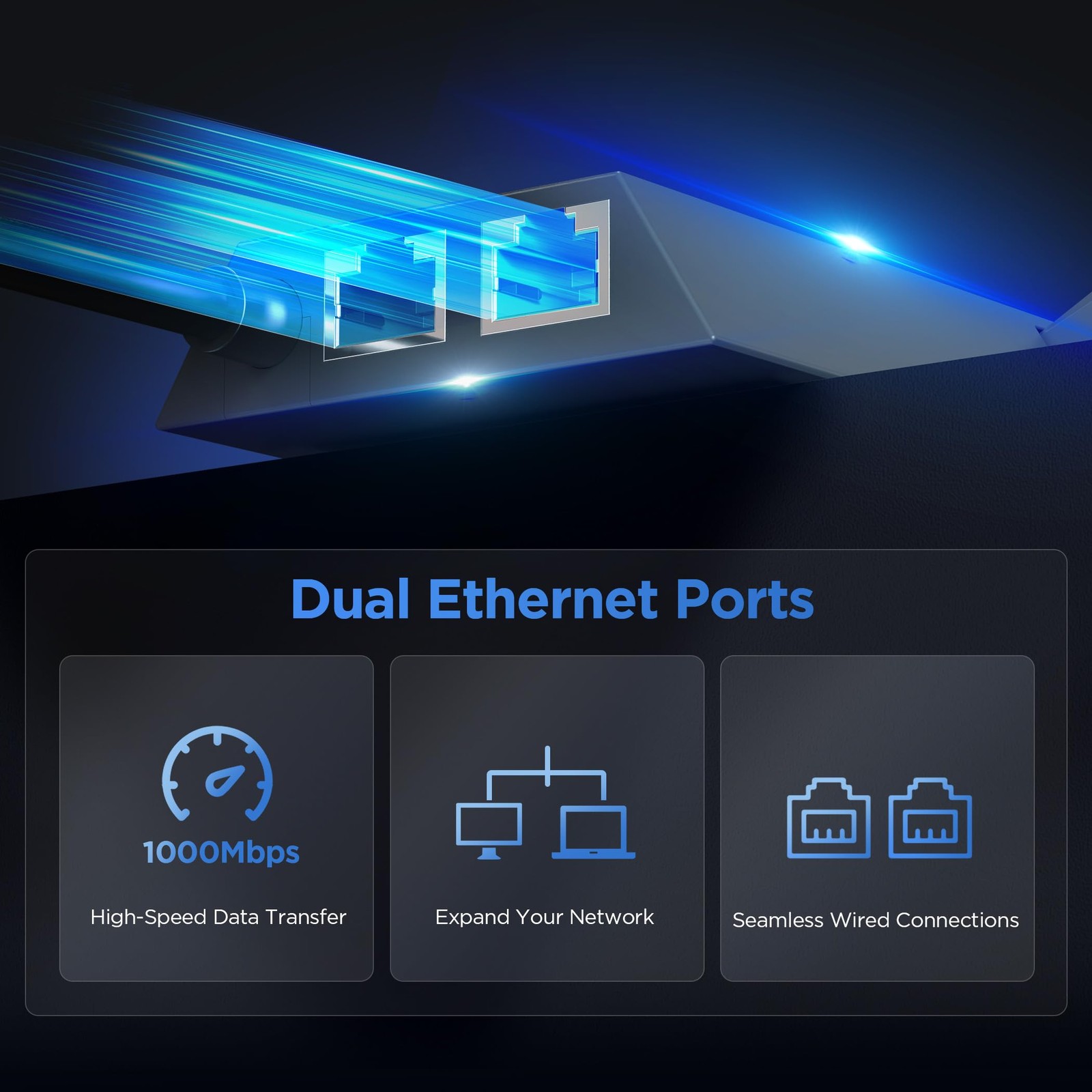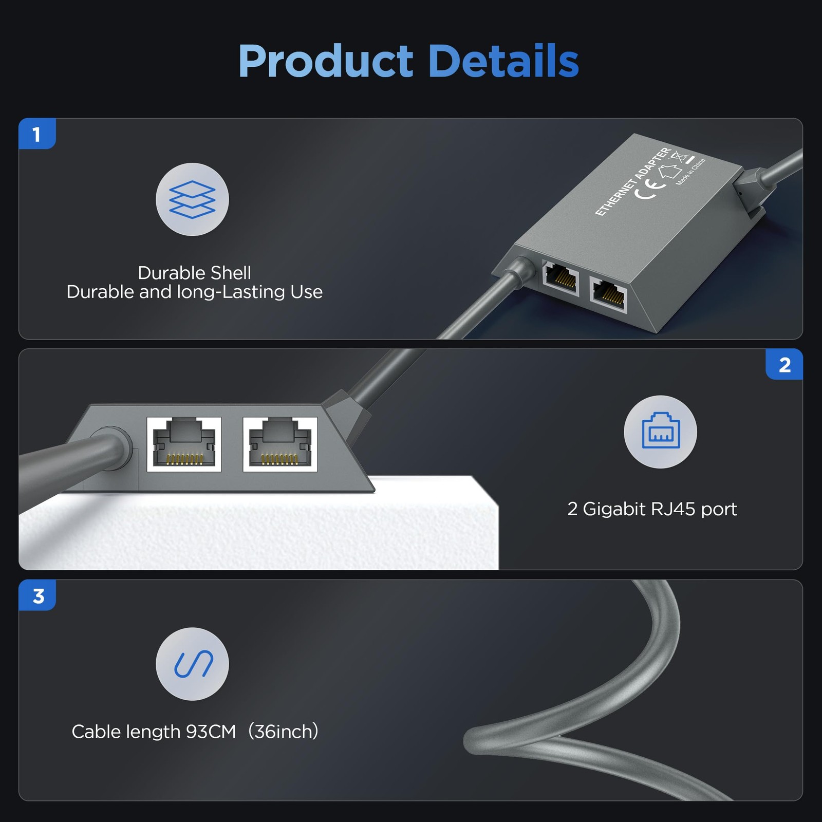 Starlink Gen 2 Ethernet Adapter 2-Port Splitter Wired Network Up to 1Gbps