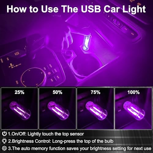 2 PCS Car USB Night Light Bulb, Touch Dimmable Car Interior Ambient purple