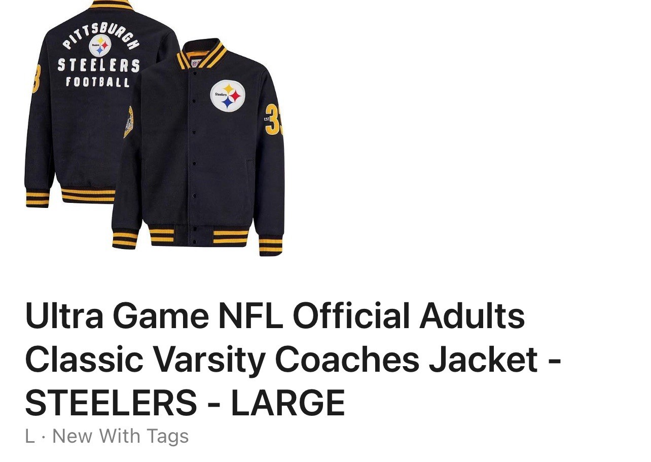 • NWT Ultra Game Pittsburgh Steelers Coaches Jacket Mens Size Large Black