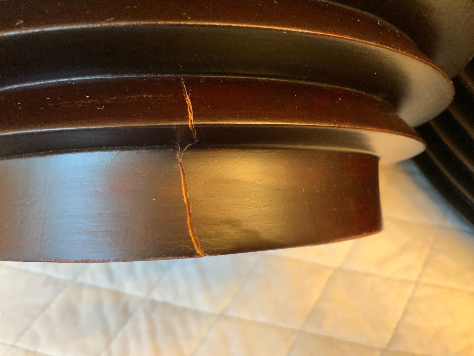 • Large Carved Wood Vase unique 2 pieces ribbed dark brown 18" tall