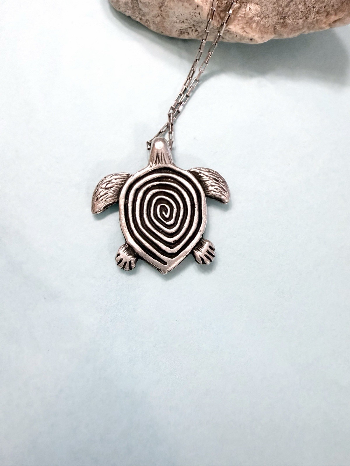 Silver Plated Sea Turtle Pendant Necklace With Sterling Chain 20 In