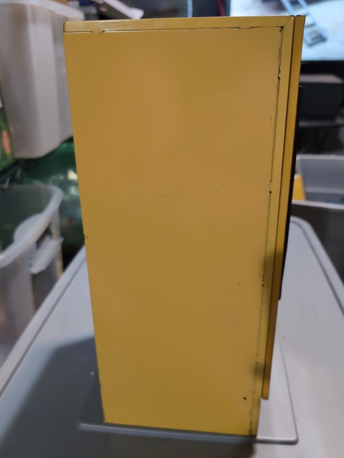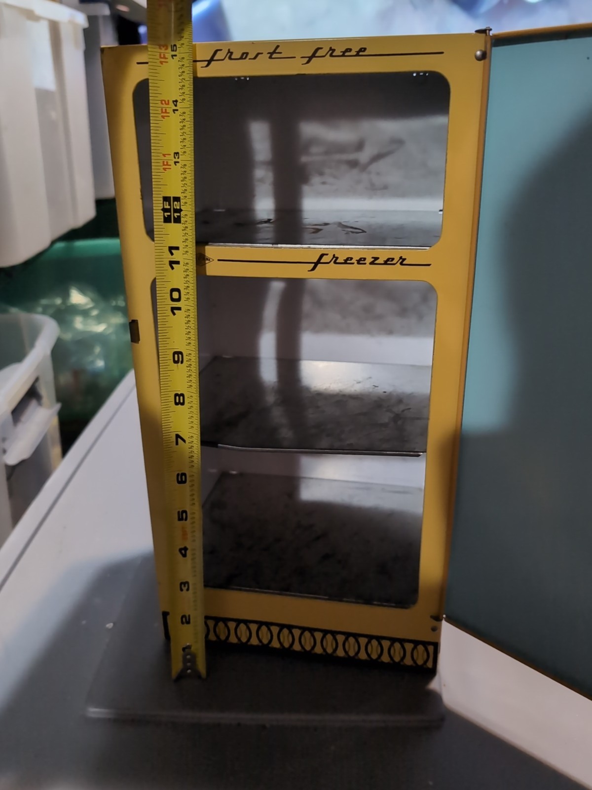 Vintage Wolverine Tin Toy Refrigerator Miniature Kitchen USA Yellow Sunny Suzy