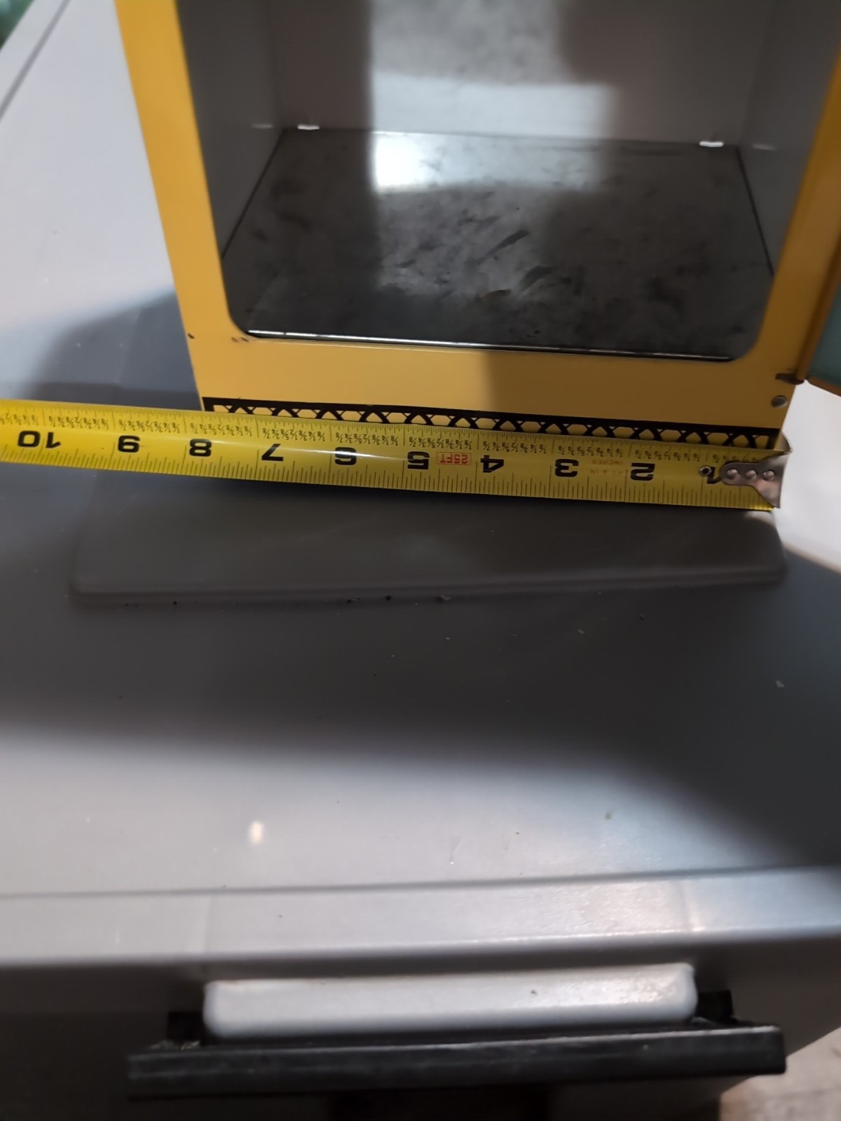 как выглядит Vintage Wolverine Tin Toy Refrigerator Miniature Kitchen USA Yellow Sunny Suzy фото