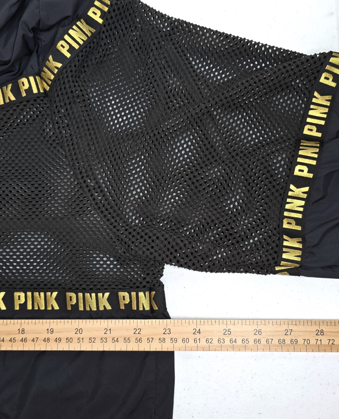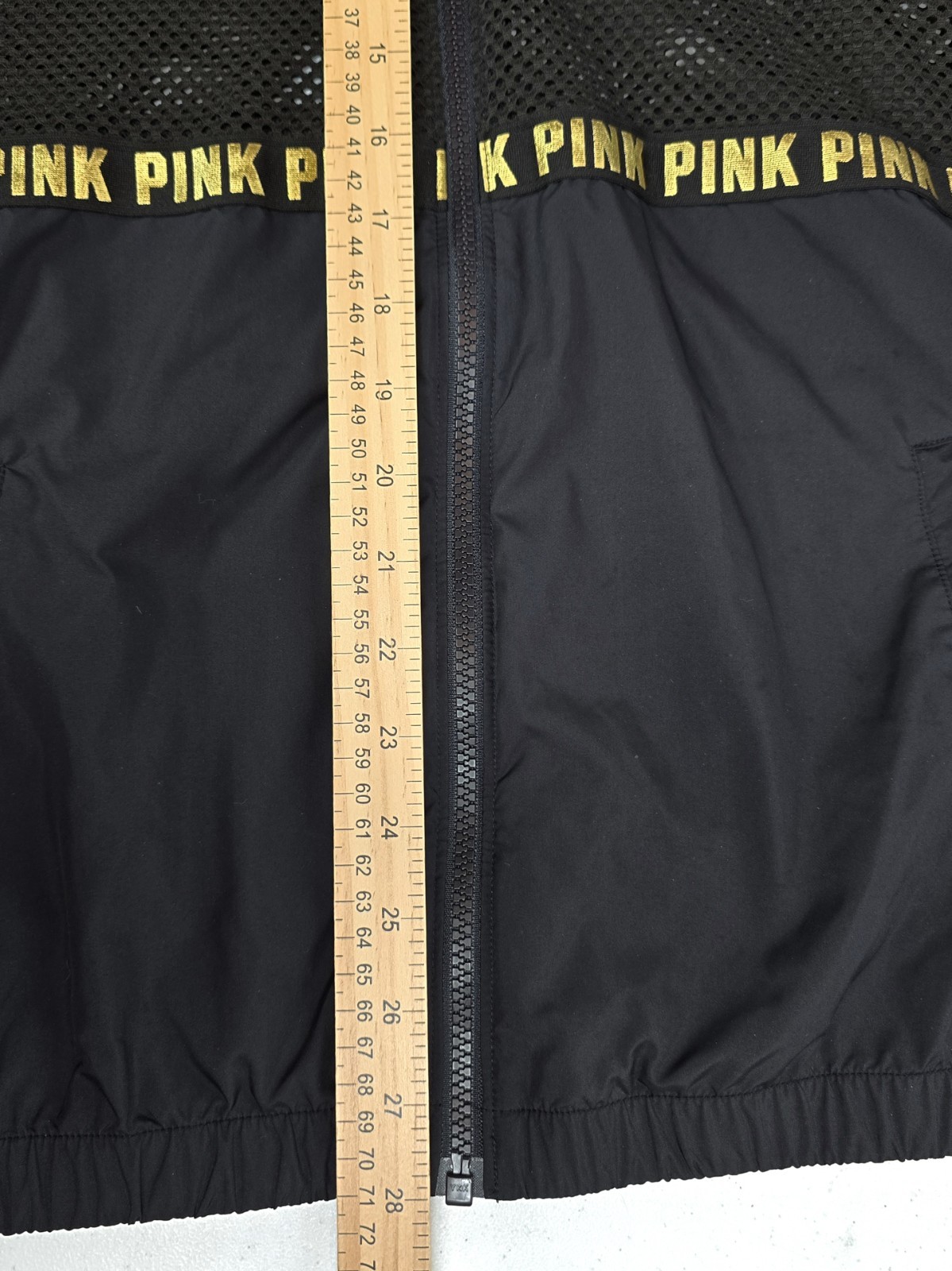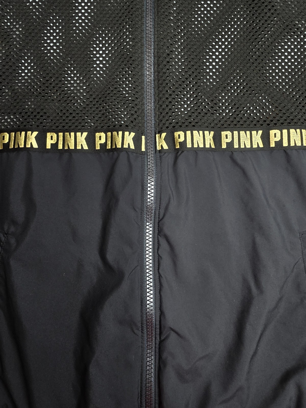как выглядит Victorias Secret PINK Spell Out Logo Zip Mesh Hooded Windbreaker Jacket Sz Med фото