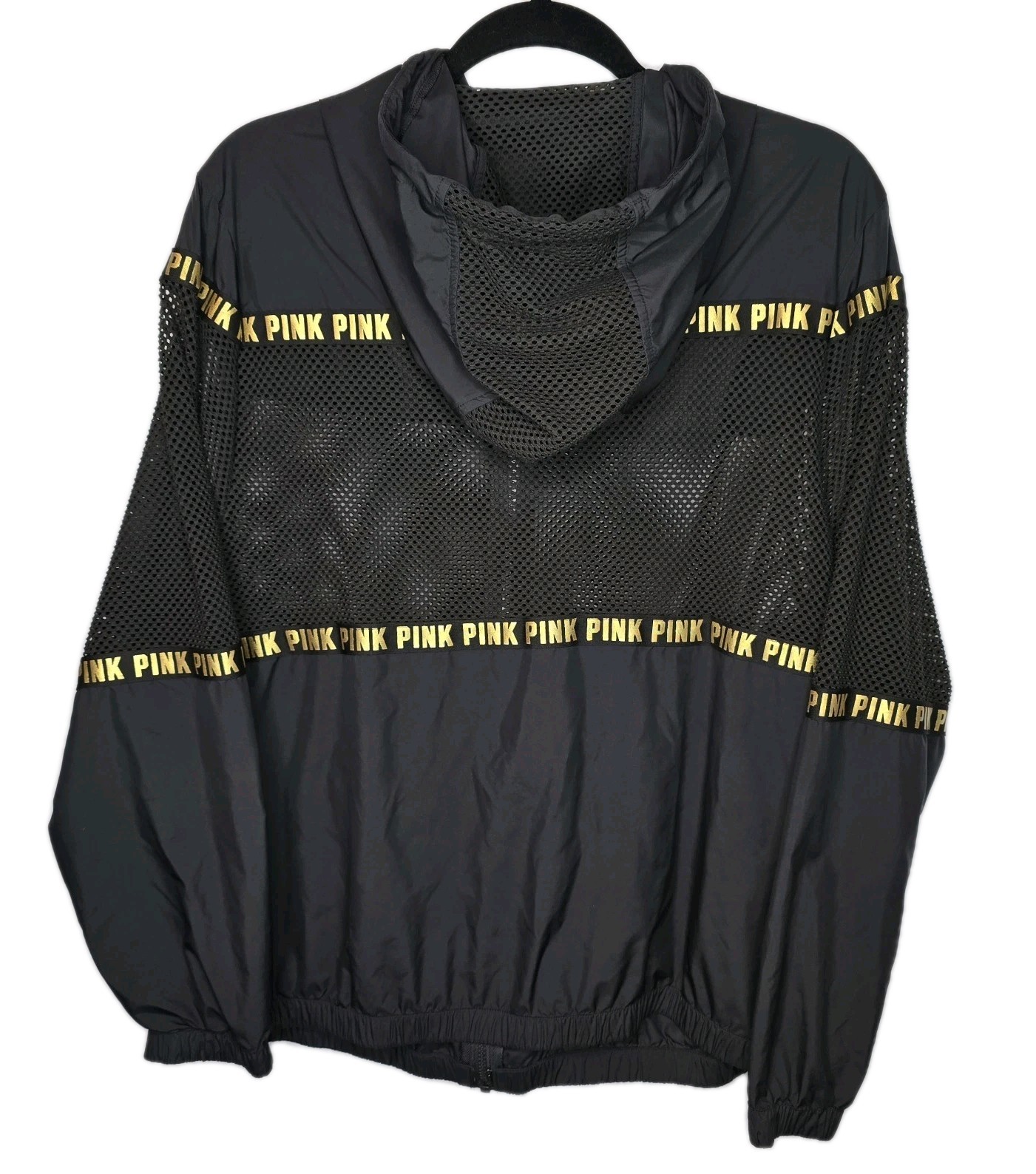 Victoria's Secret PINK Spell Out Logo Zip Mesh Hooded Windbreaker Jacket Sz Med