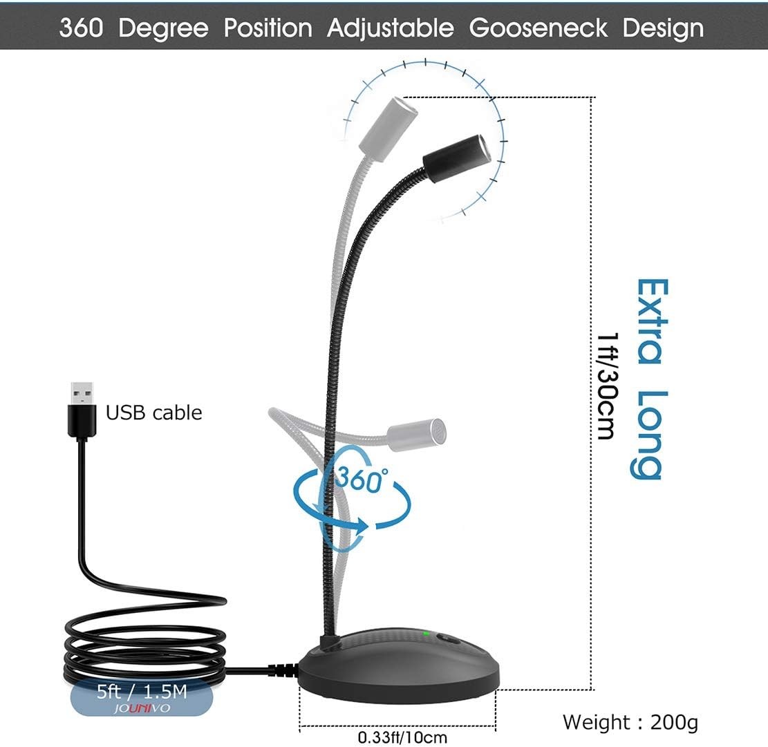 JOUNIVO USB Microphone, 360 Degree Adjustable Gooseneck Design, Mute Button LE