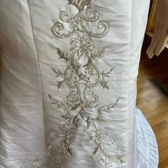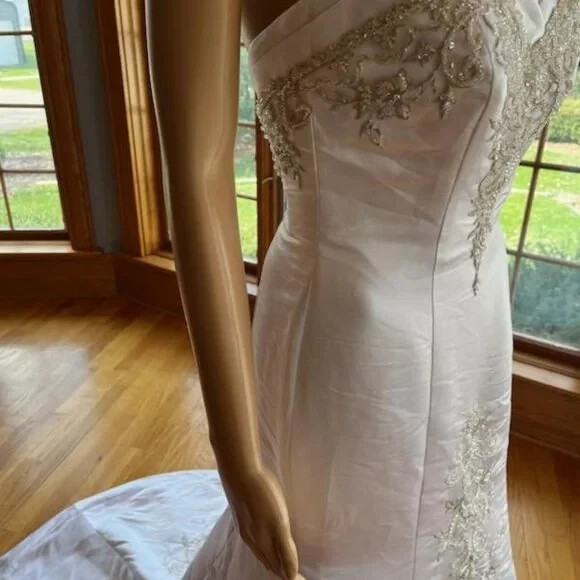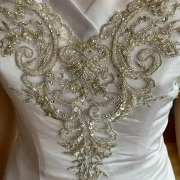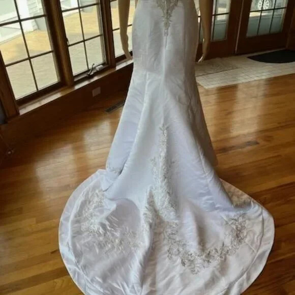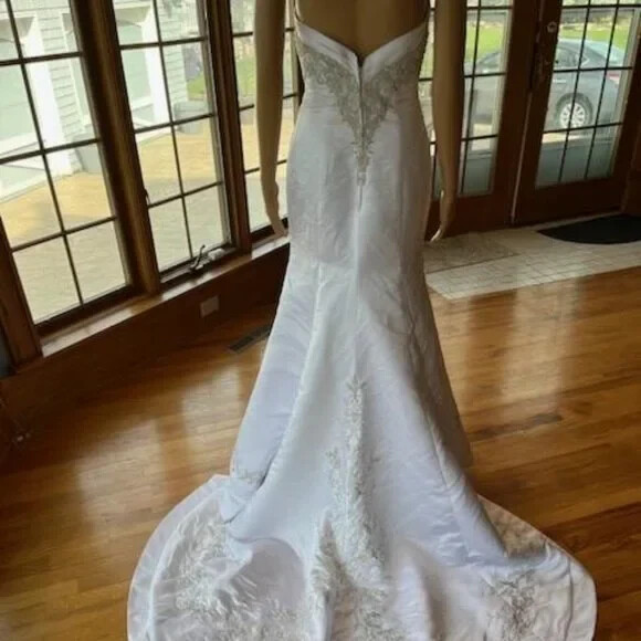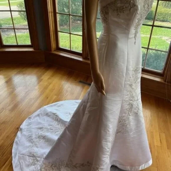 David's White Silver Strapless Fitted Flared Bridal Gown Wedding Dress Size 4
