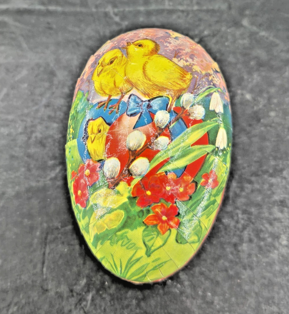 VTG West German Paper Mache Easter Egg Candy Container - Lithographed
