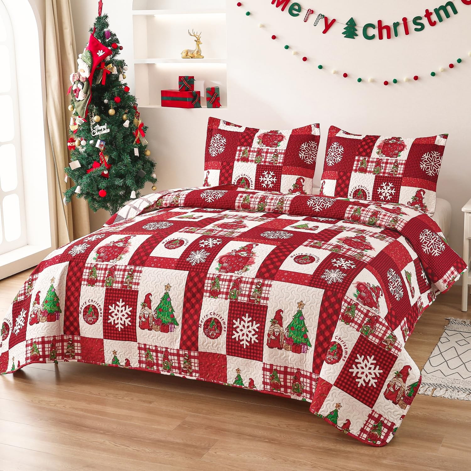 Christmas Bedspread Quilt Sets King Size - Reversible Christmas Tree Snowflak...