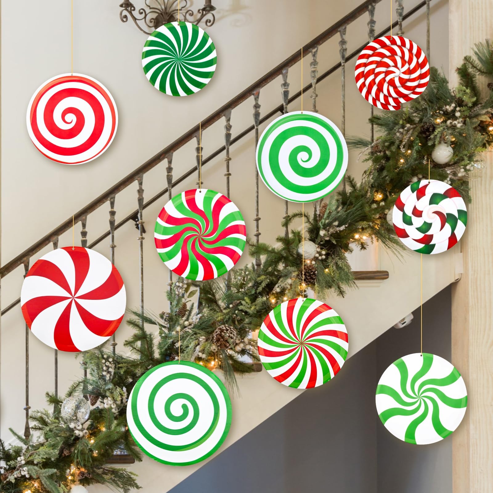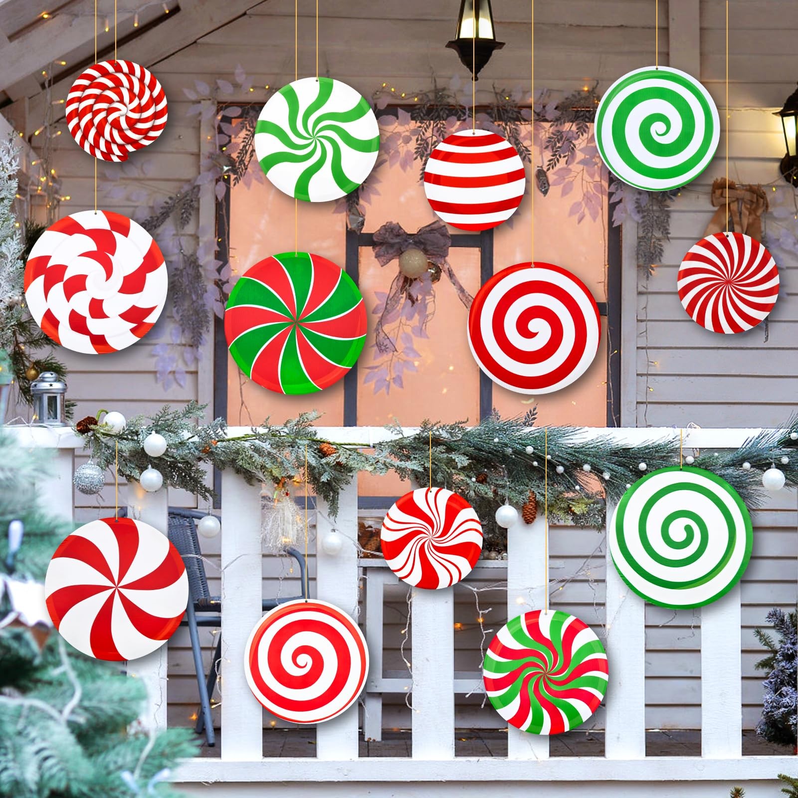 18PCS 12/10/8inch Large Christmas Candy Yard Hanging Ornaments Double Sided H...