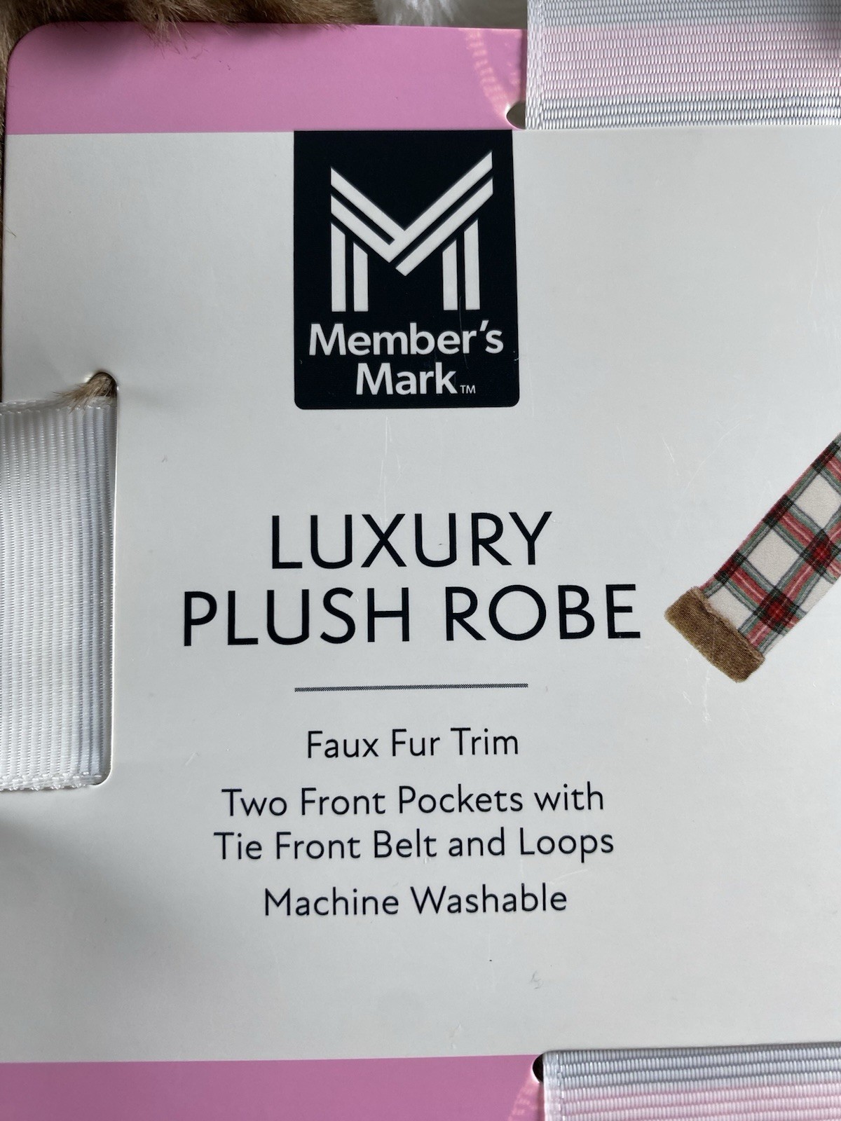 Member's Mark Ladies Luxury Plush Robe Plaid Small/Medium