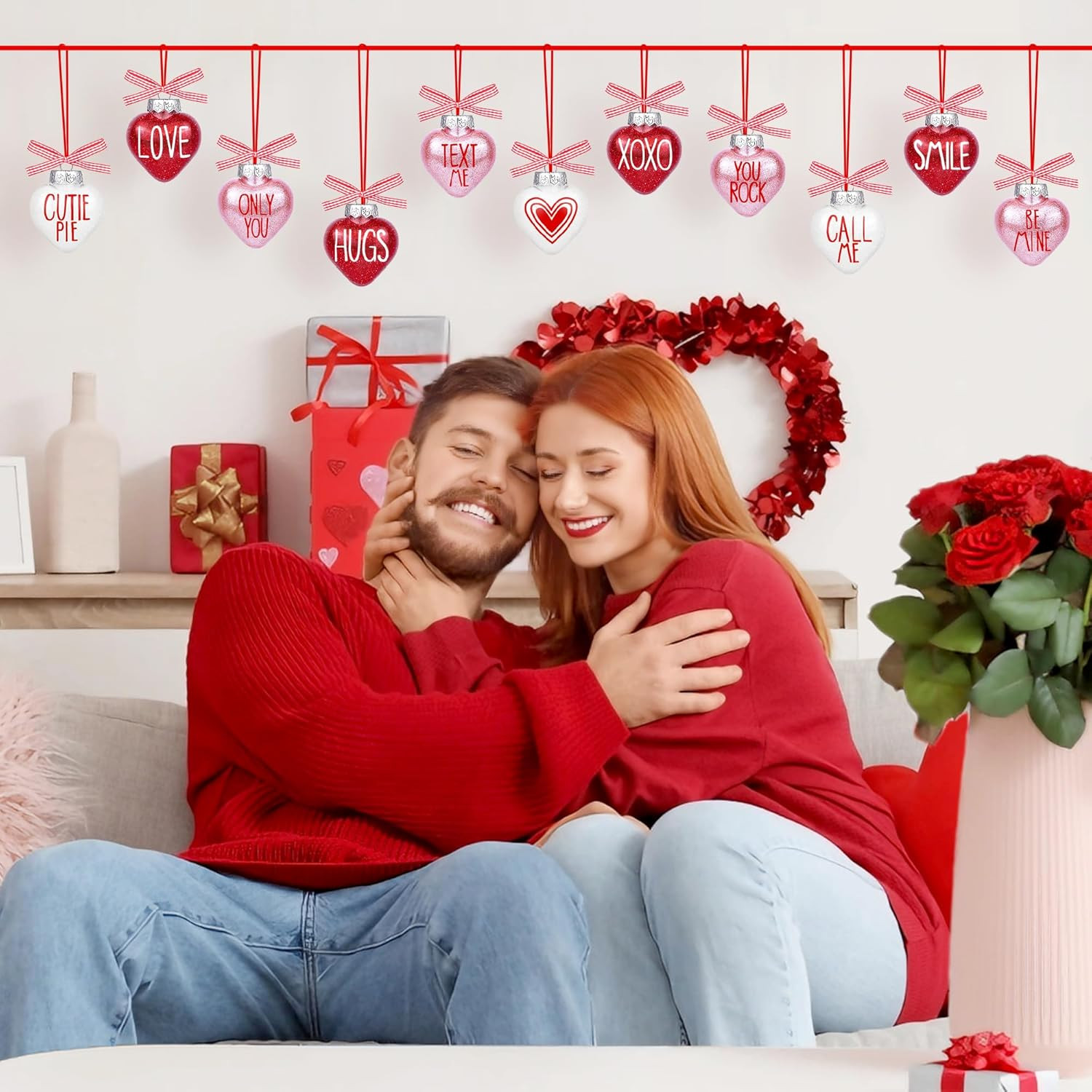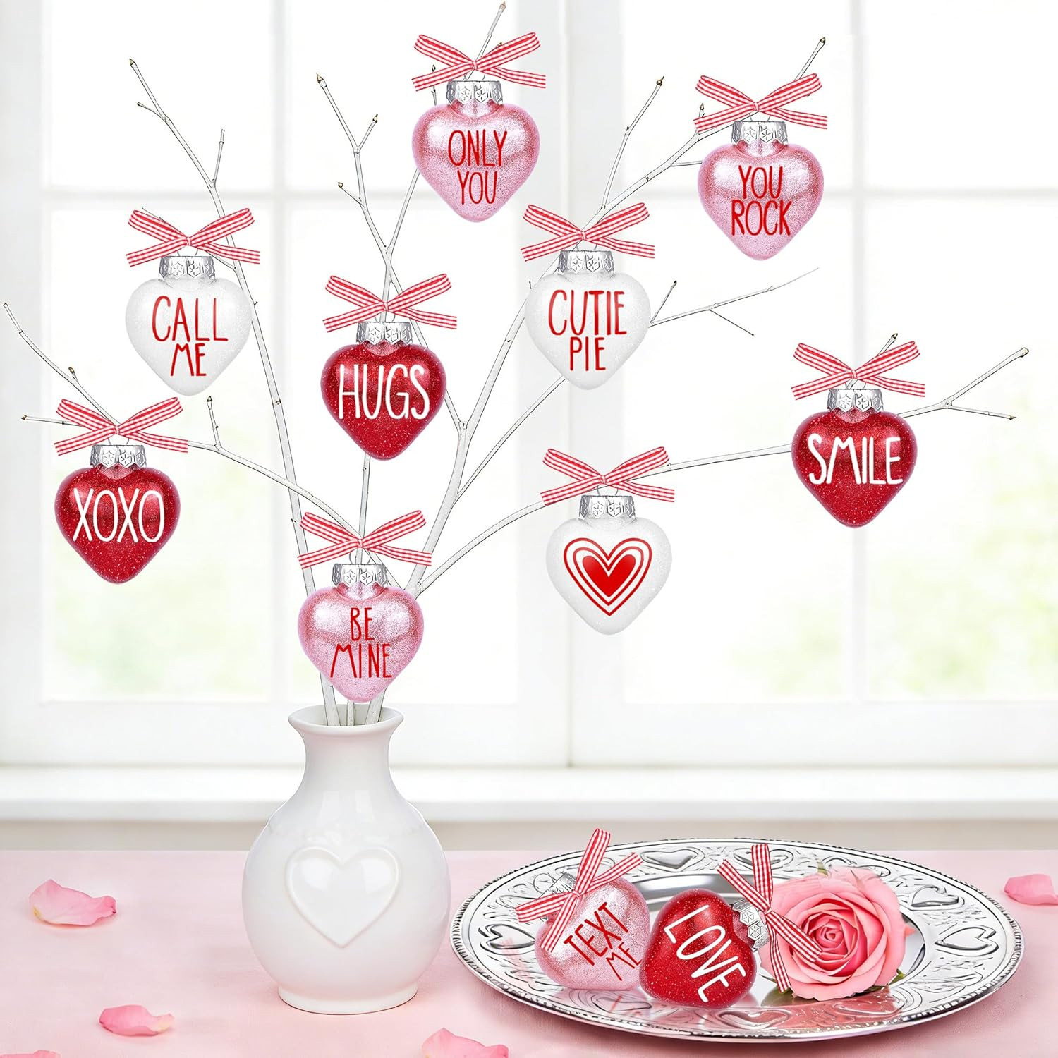 11 Pcs Valentines Day Heart Ornaments, 2.4 Inch Red Pink White Valentine'S Heart