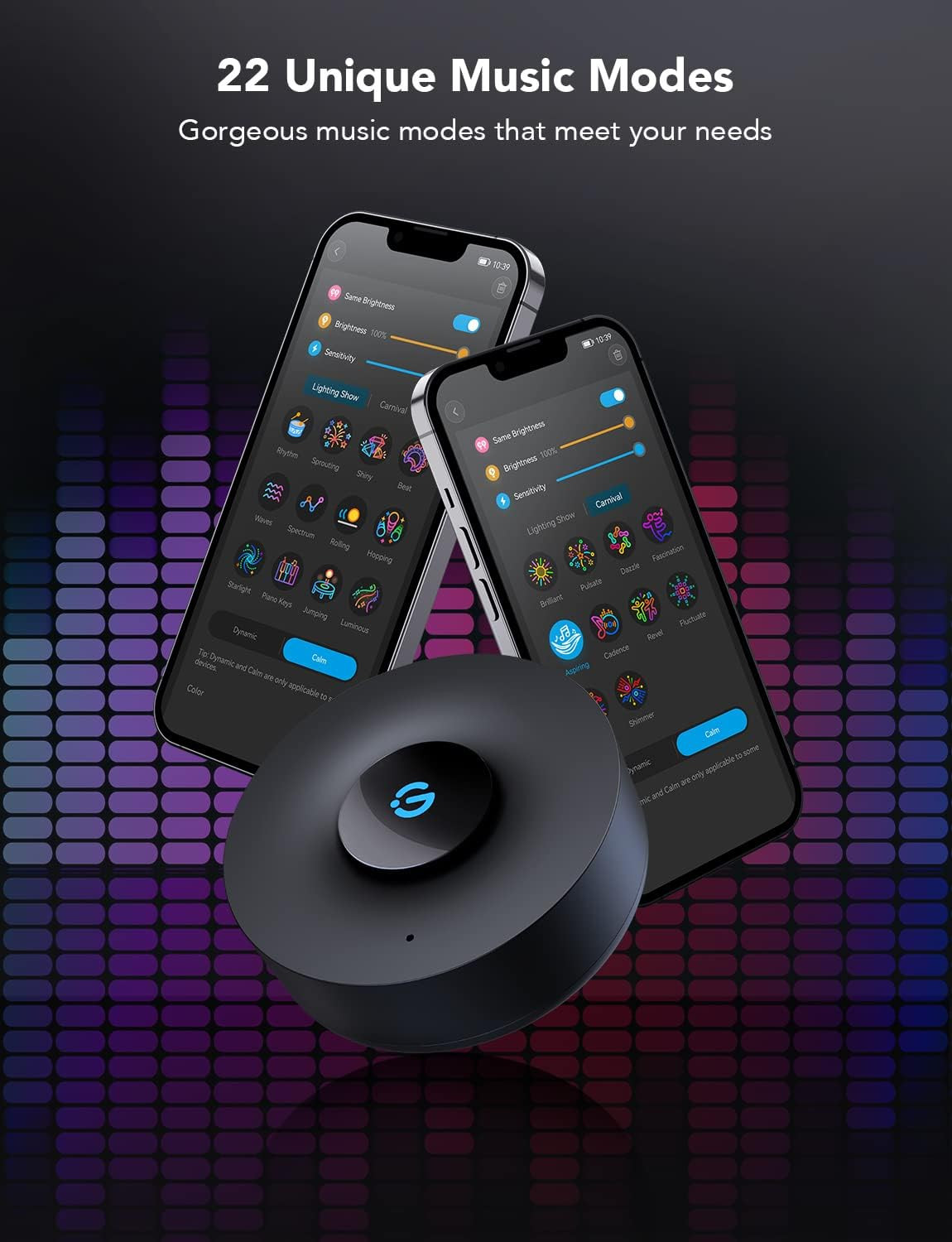 Music Sync Box, Bluetooth Group Control 7 Devices, 22 Dynamic Music Modes, Batte