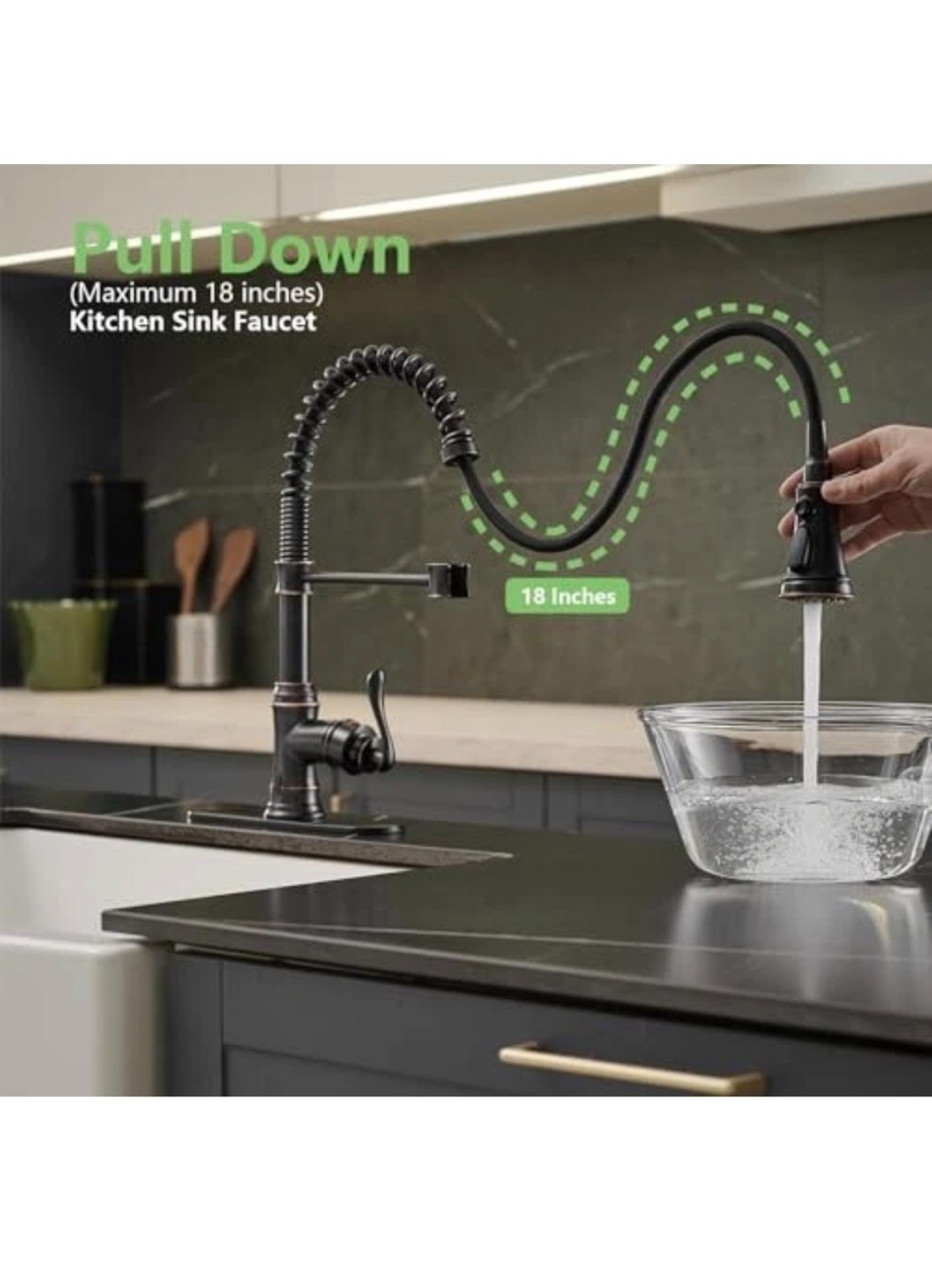 Kitchen Faucet Oil Rubbed with Pull Down Sprayer Black Single B-64553 Bronze