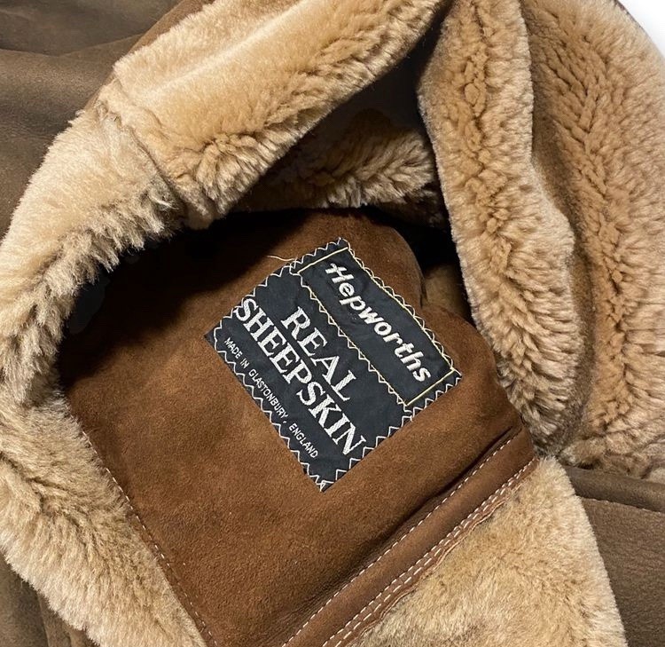 как выглядит Vintage Shearling Sheepskin Suede Leather Marlboro Ranch Coat Made In England фото