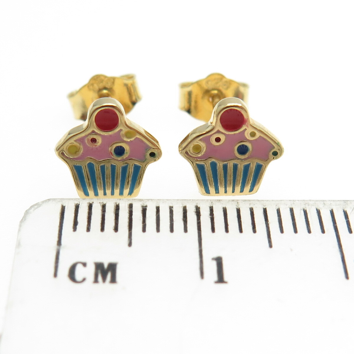 как выглядит 925 Sterling Silver Gold Plated Enamel Cupcake Stud Earrings фото