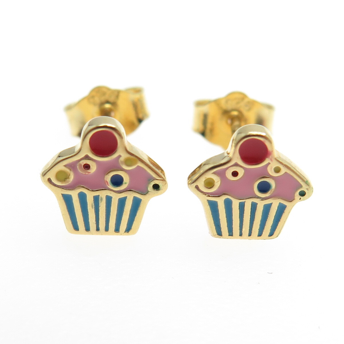 925 Sterling Silver Gold Plated Enamel Cupcake Stud Earrings