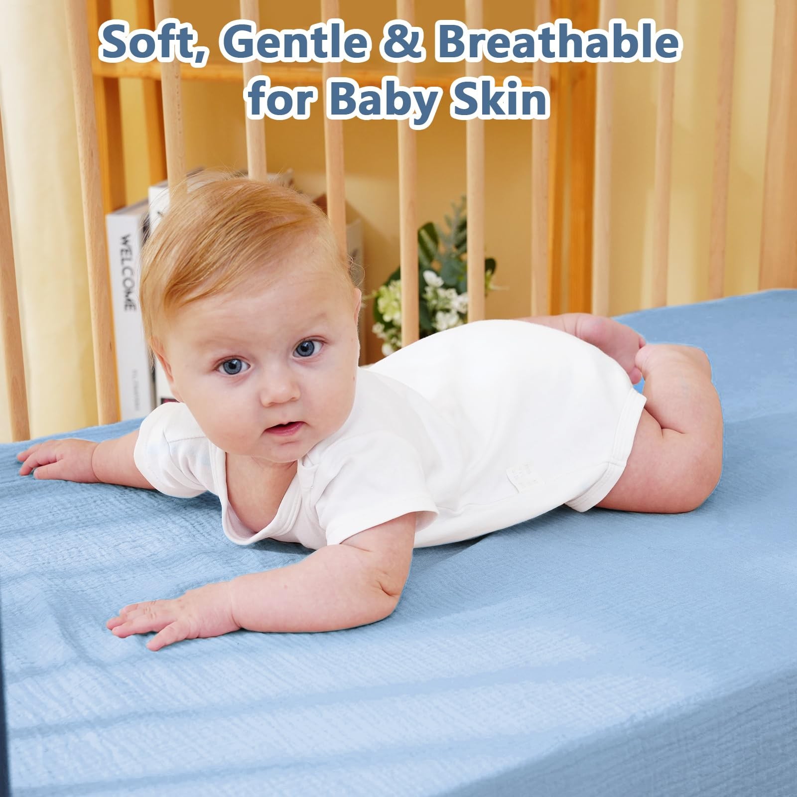 Muslin Crib Sheet 100 Cotton Baby Fitted Sheet for Boys Girls, Ultra Sof...