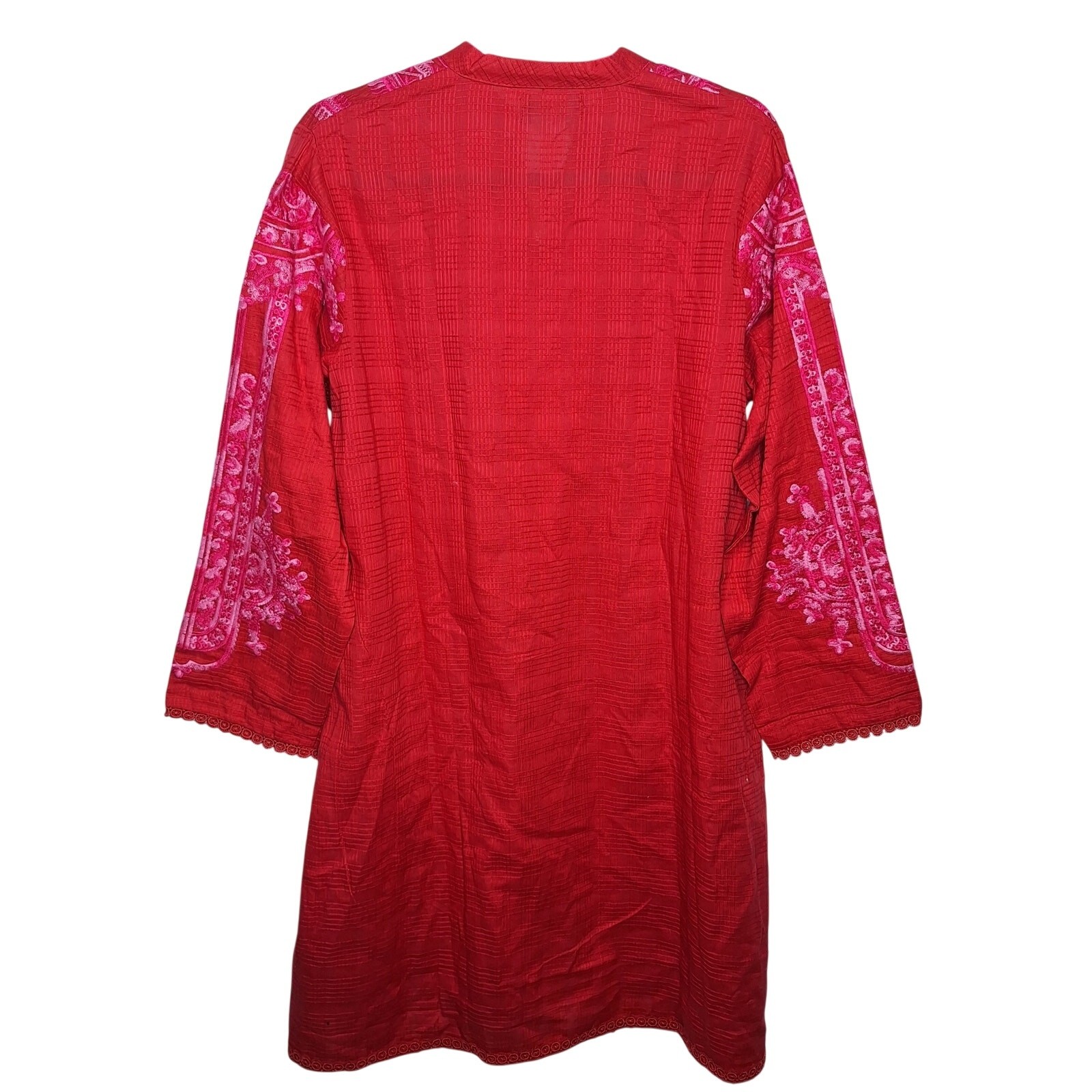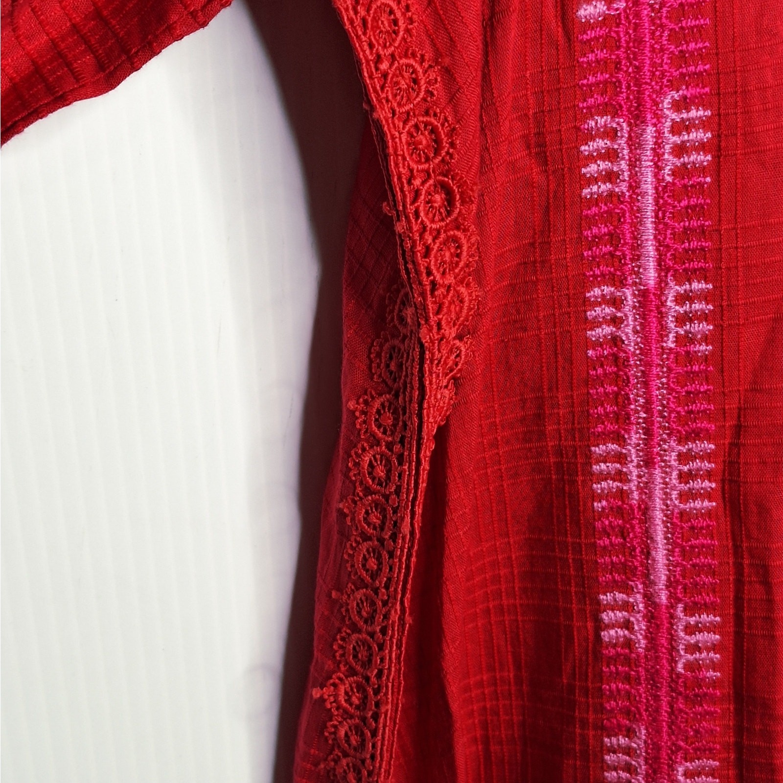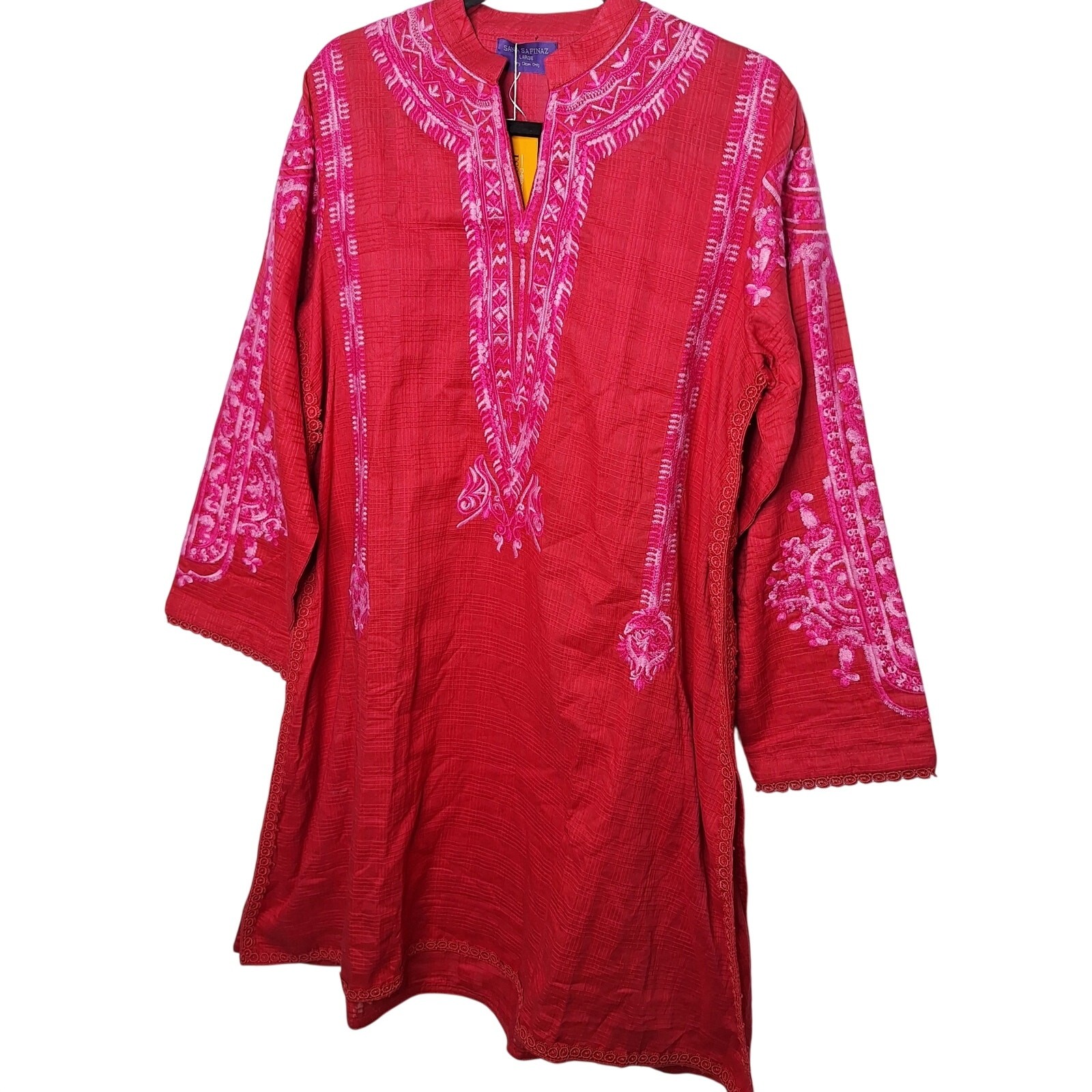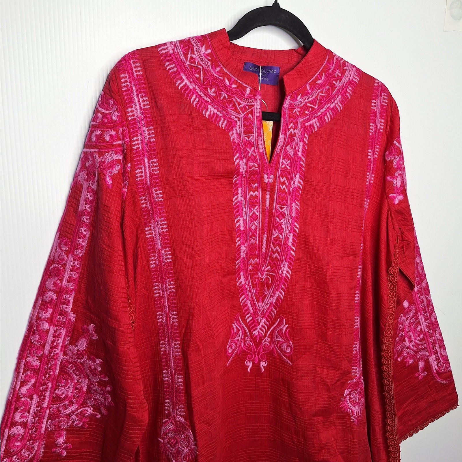 как выглядит Sana Safinaz Embroidered Essentials Kameez Tunic Top Large 100 Cotton Red Pink фото