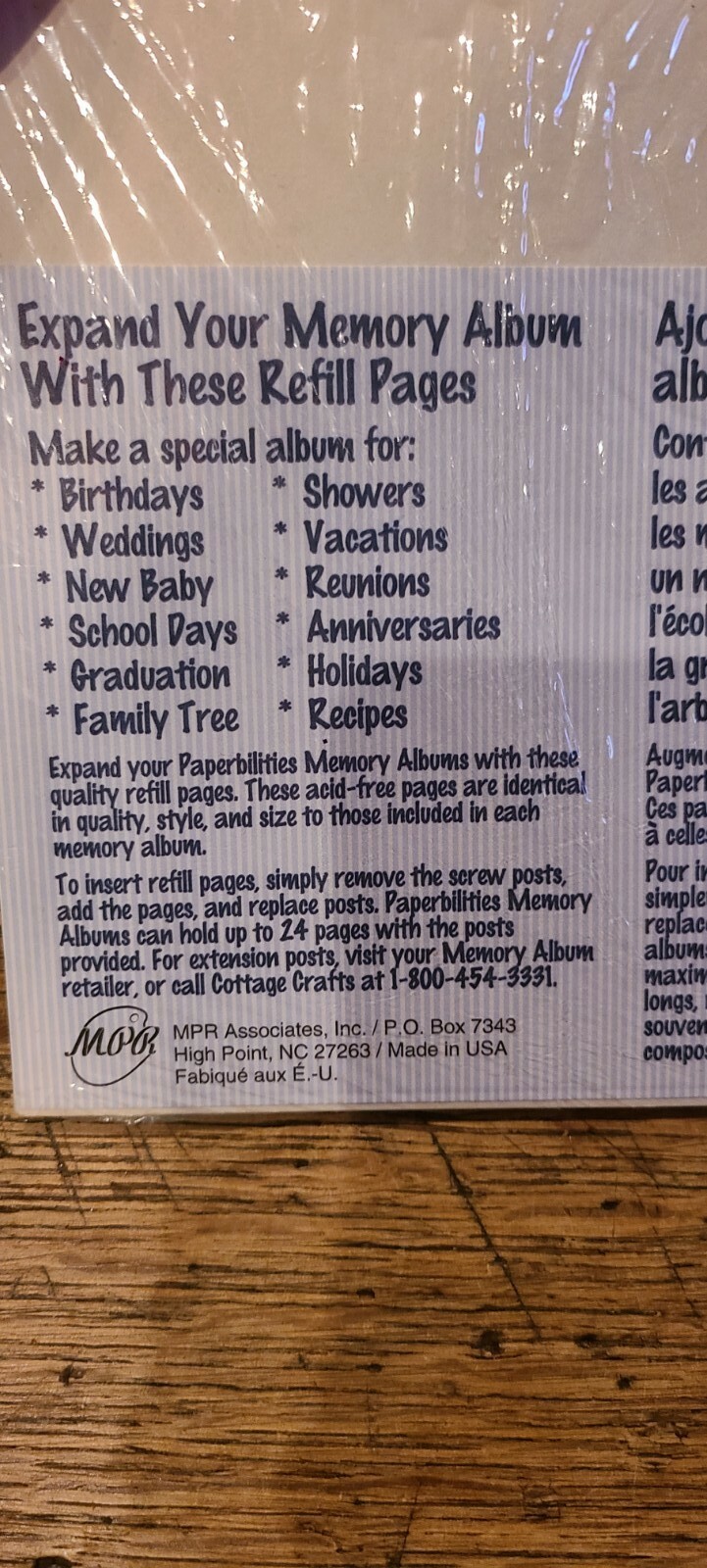 Vintage Paperbilities Photo Memory Album Refill Pages 85020 12 Sheets SEALED