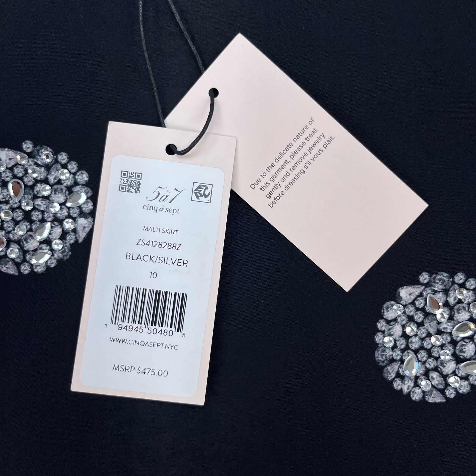 Cinq a Sept 5a7 Malti Skirt Womens 10 Black Silver Rhinestone Sparkly Midi NEW