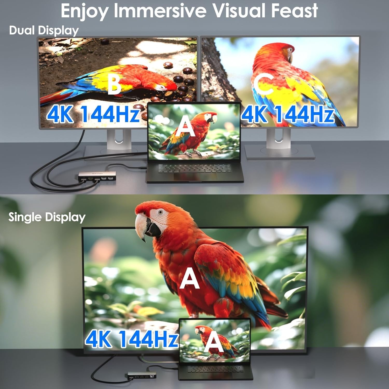 USB-C Docking Station Dual HDMI, 4-Monitor Dock, 100W PD, 5G Ethernet