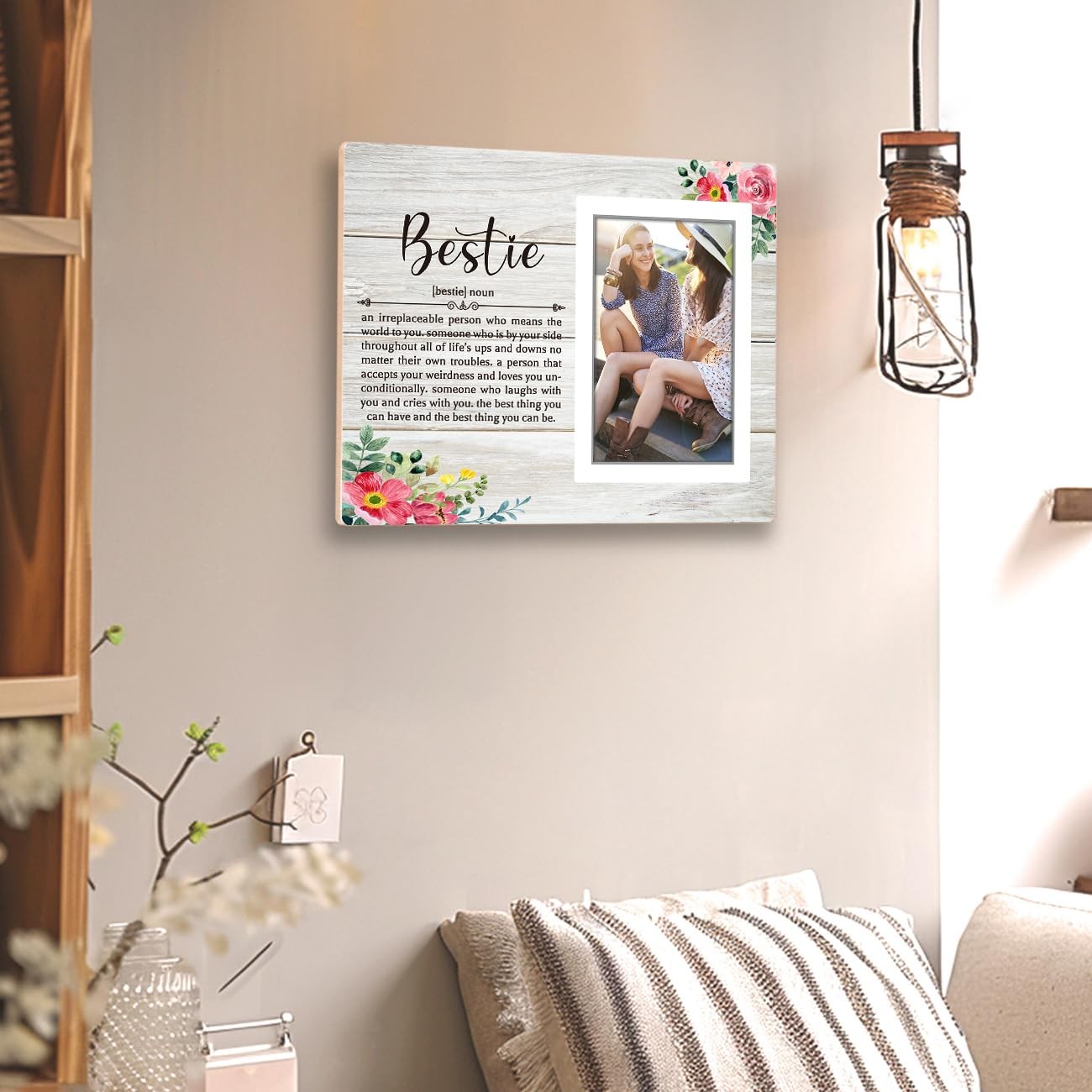 Wooden Picture Frame for Bestie Sister - Friendship Photo Frame, Desk Decor...