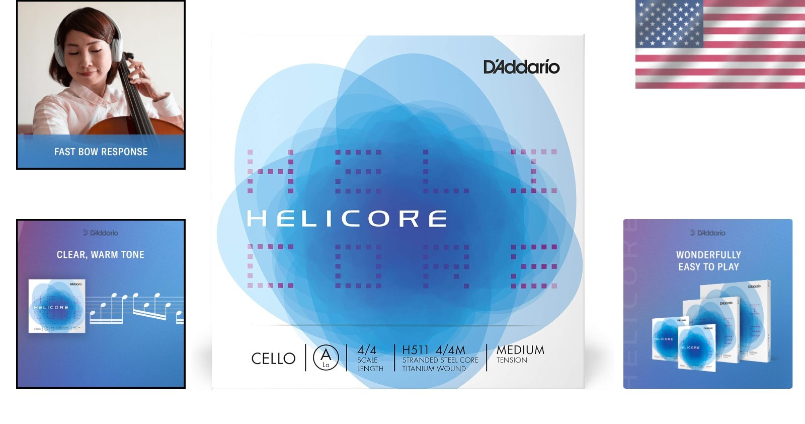 D'Addario Helicore A Cello String - 4/4 Size, Warm Tone, Made in the USA