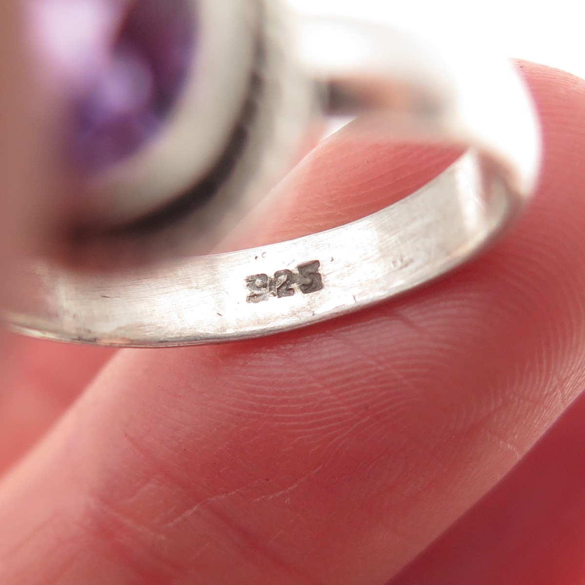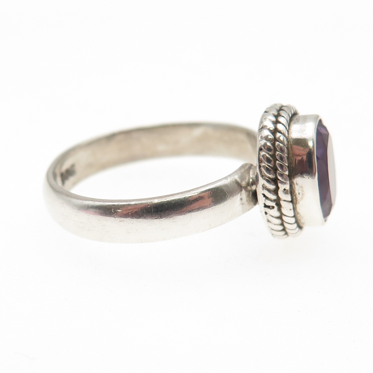 925 Sterling Silver Vintage Real Oval-Cut Amethyst Ring Size 8
