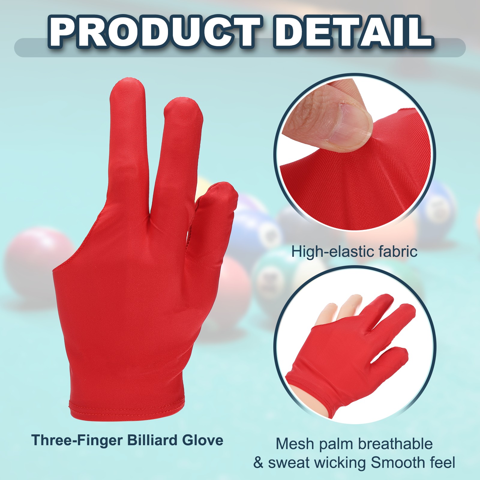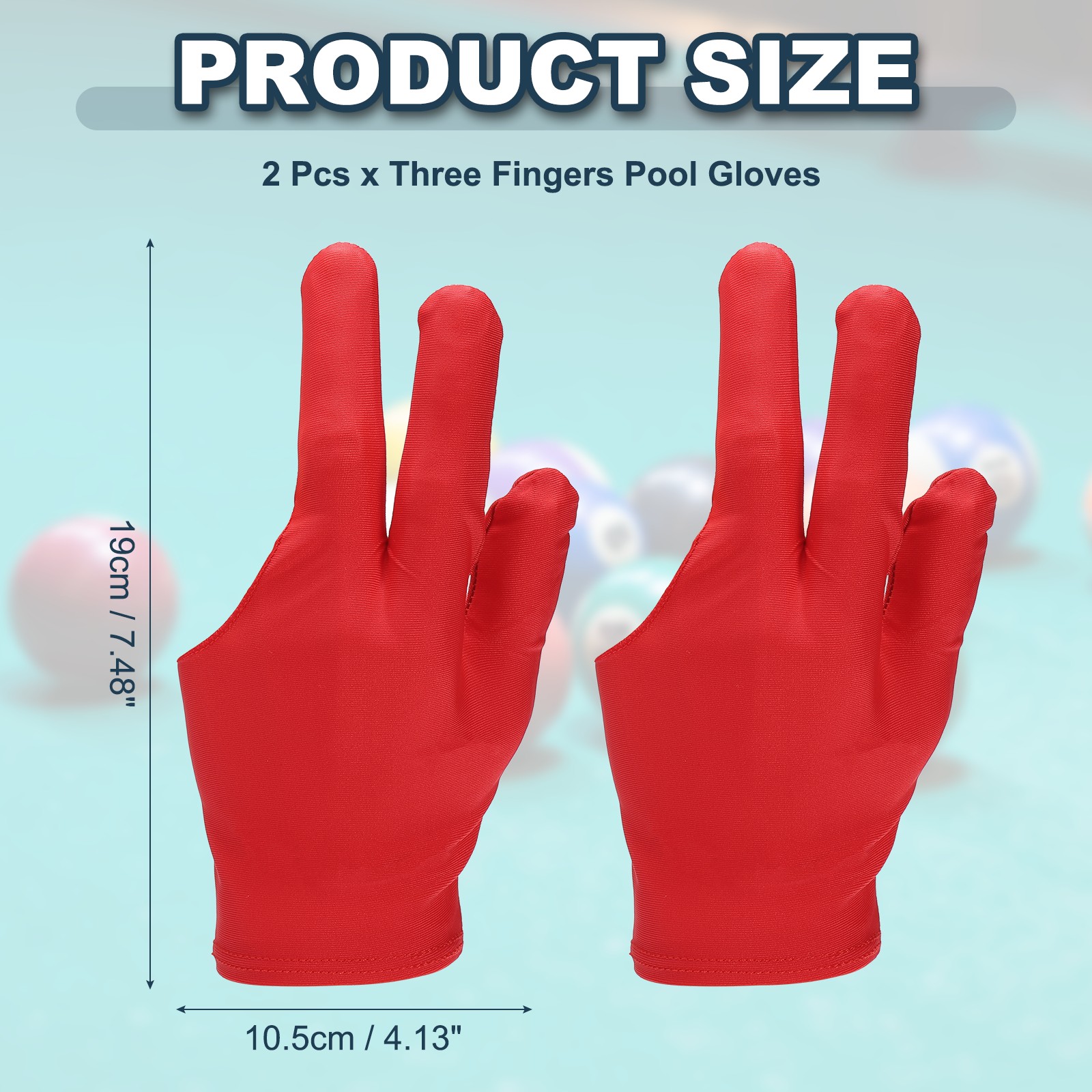 2 Pcs Three Fingers Pool Gloves, Billiards Left Hand Cue Sport Gloves, Red