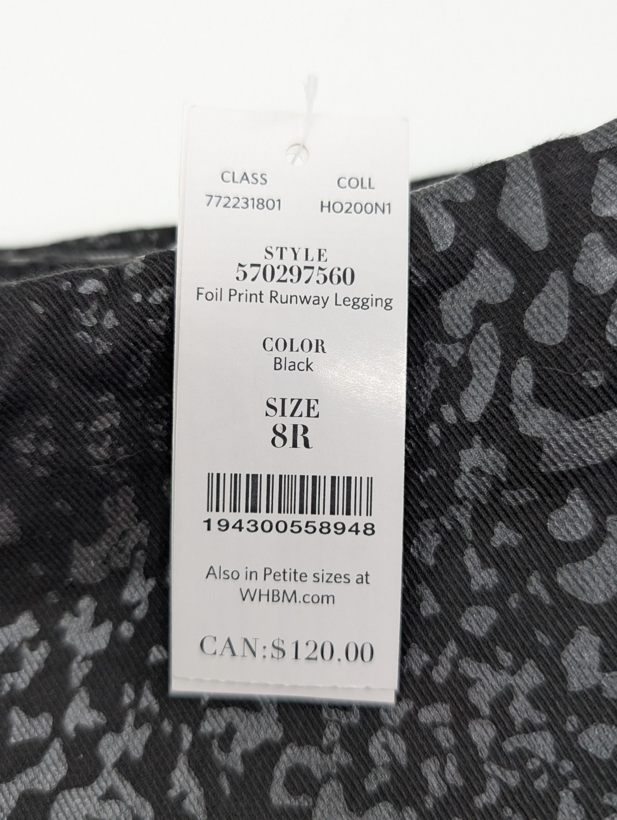 WHBM Runway Leggings Size 8 Pullon Pants White House Black Market Foil Print NWT