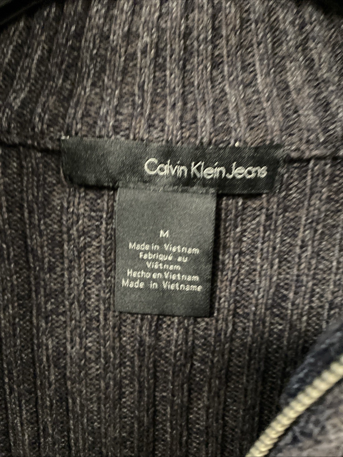 Calvin Klein Jeans Men's Sweater 1/4 Zip Charcoal Grey Ribbed Crew Neck Size M