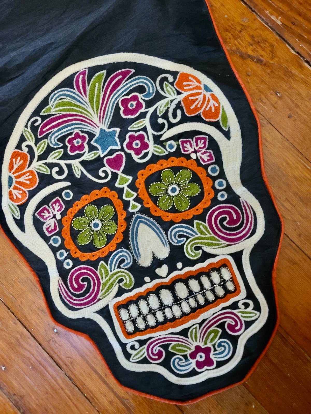 Halloween Party Decor Table Runner Skull Dia de Los Muertos Embroidered Dead
