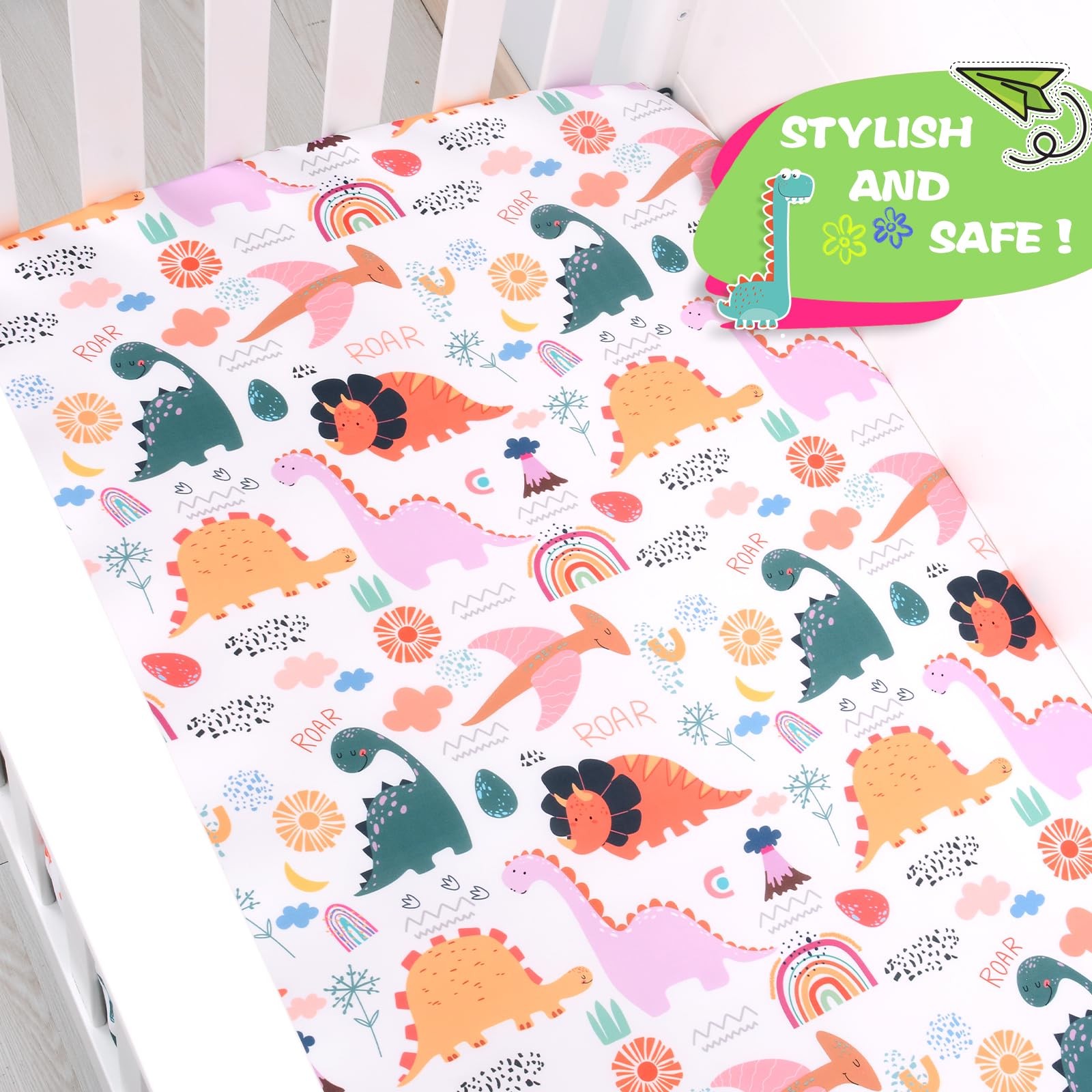 JISEN Baby Crib Sheet 1 Piece Portable Fitted one size, Multicolor Dinosaurs