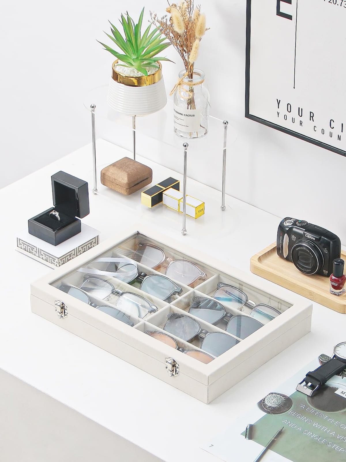 Jewelry Sunglasses Organizer Tray, Beige Velvet Eyeglasses Display Tray Box, ...