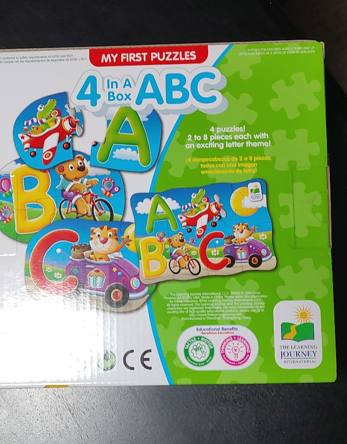 My First Puzzles, 4 in A Box ABC, 2 ,2,4,6 and 8 piece puzzles with ABC theme