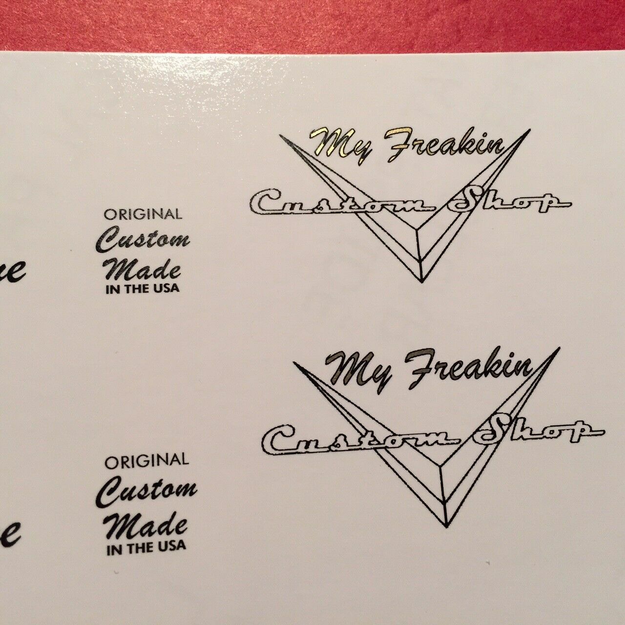 Freakin Guitar Headstock Waterslide Decals Gold Metallic 2 per order S style