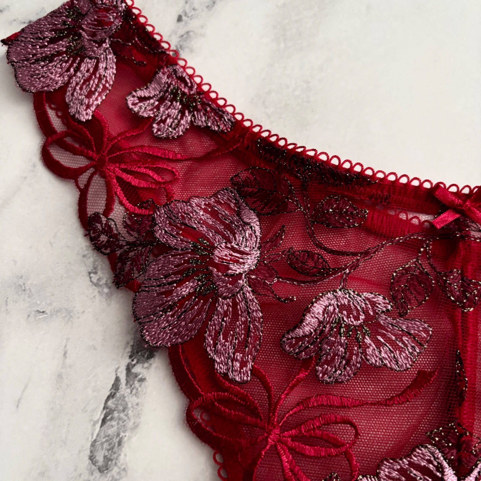 как выглядит Victorias Secret High Leg Brazilian Panty Dream Angels Red Embroidered S M фото