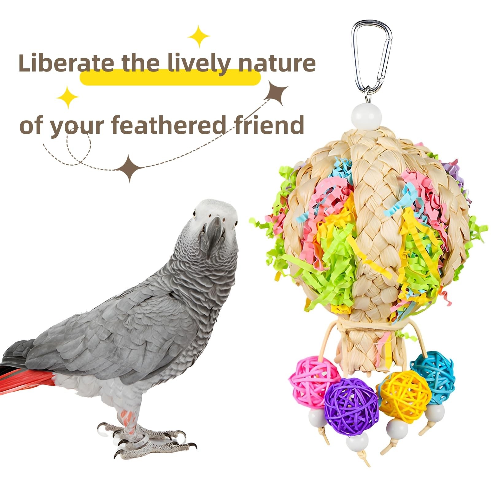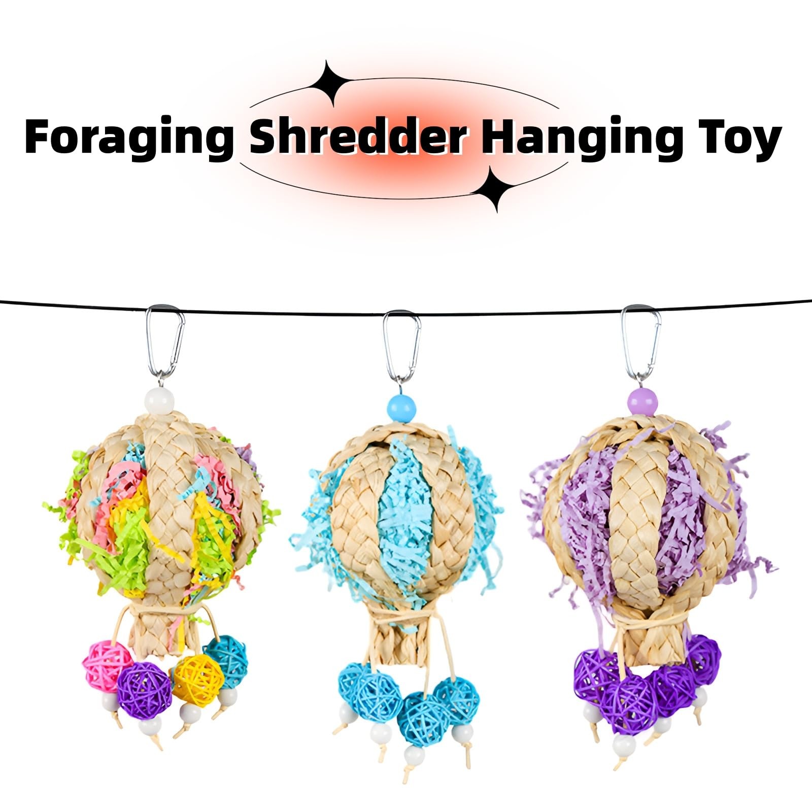 Bird Toys Foraging Shredder Hanging Toys Rope Perch with Bell Parakeet Toy Pa...