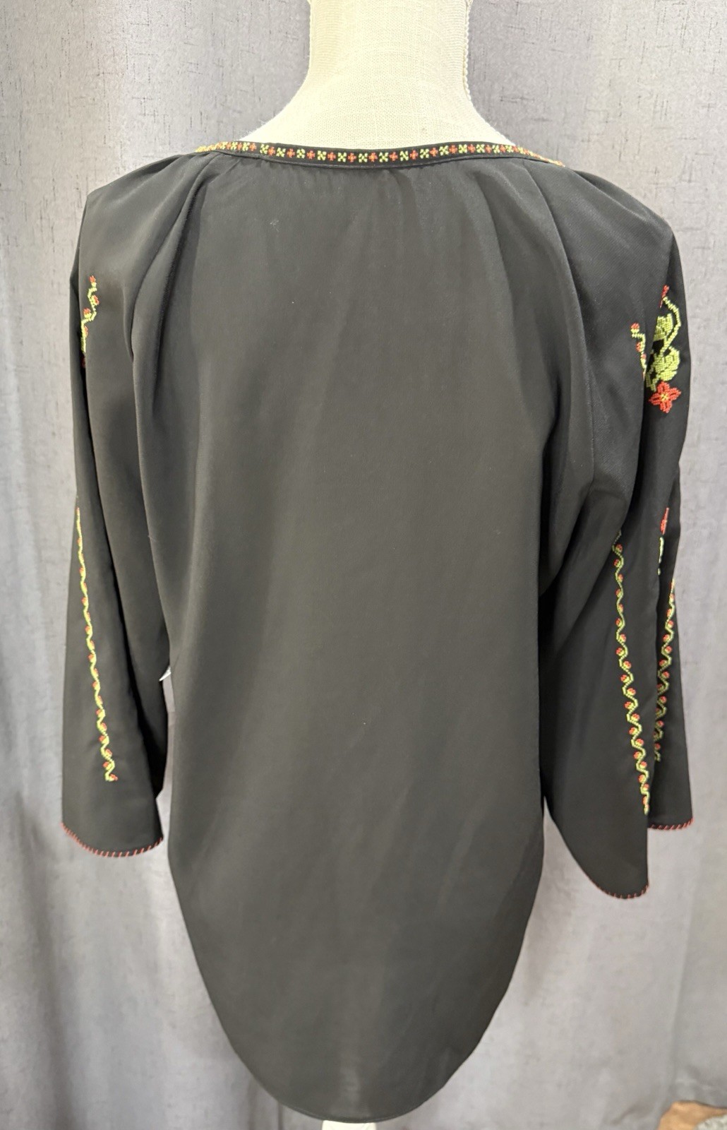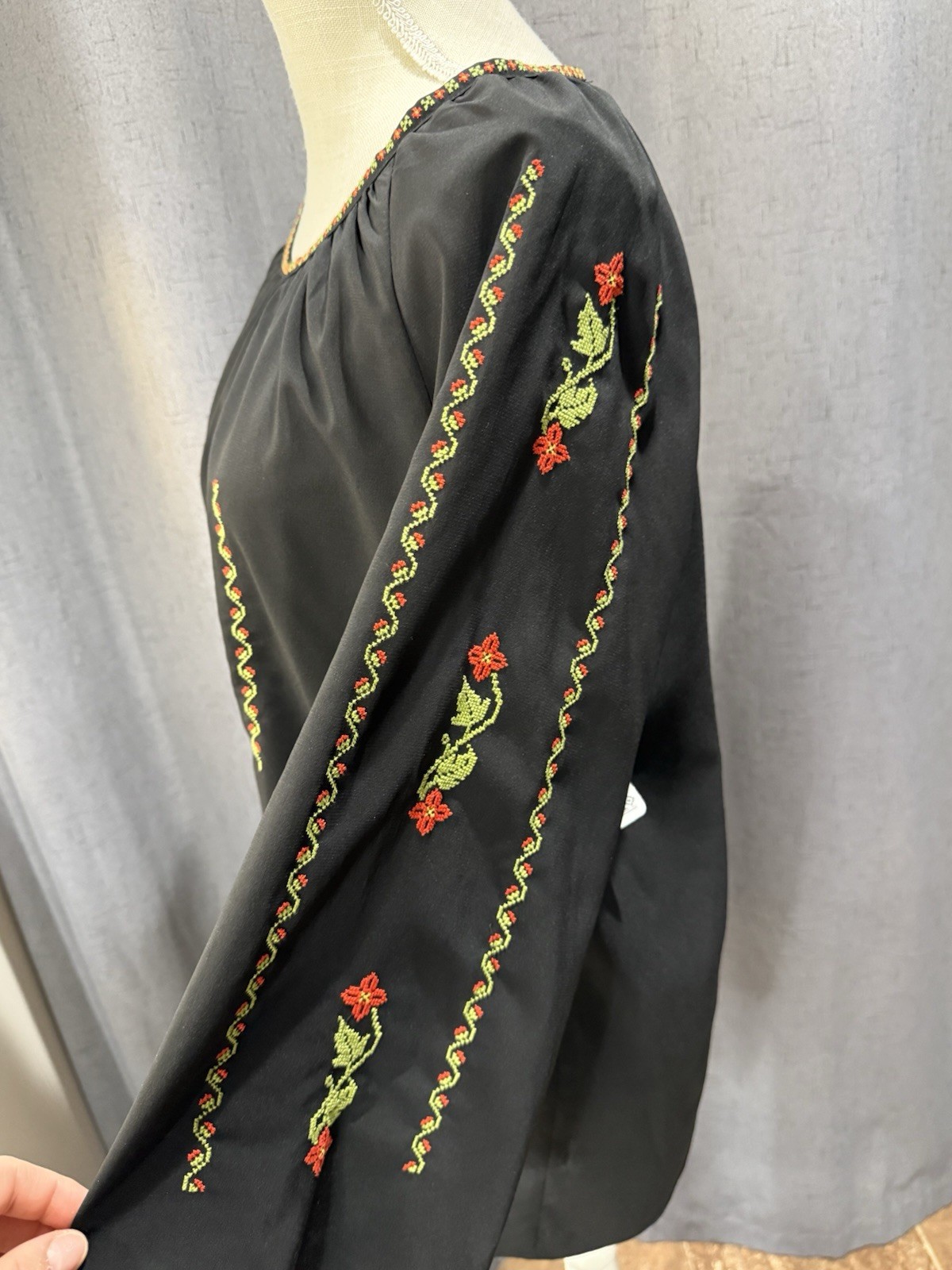Hand Embroidered Ukrainian Vyshyvanka Blouse Black Floral Women s Medium NWT