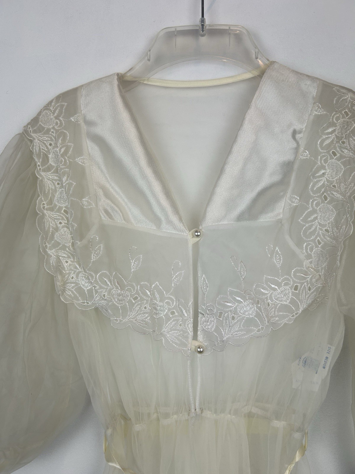 как выглядит Vintage Sheer Robe M Long Chiffon Peignoir Gown Babydoll Lace Jacket Union New фото