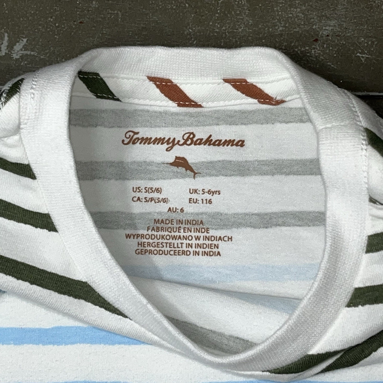 как выглядит Tommy Bahama White Red Blue Striped Short Sleeve Boys Shirt NWT Small 5/6 фото