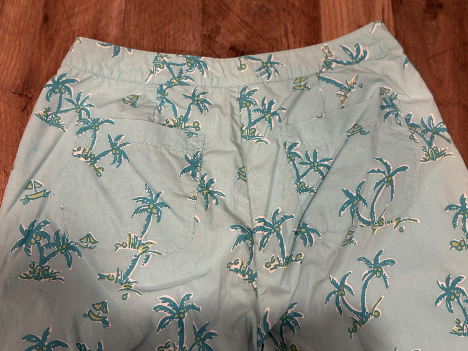 как выглядит Lilly Pulitzer Women s Aqua palm tree print capri pants Size 4 Vtg White Label фото