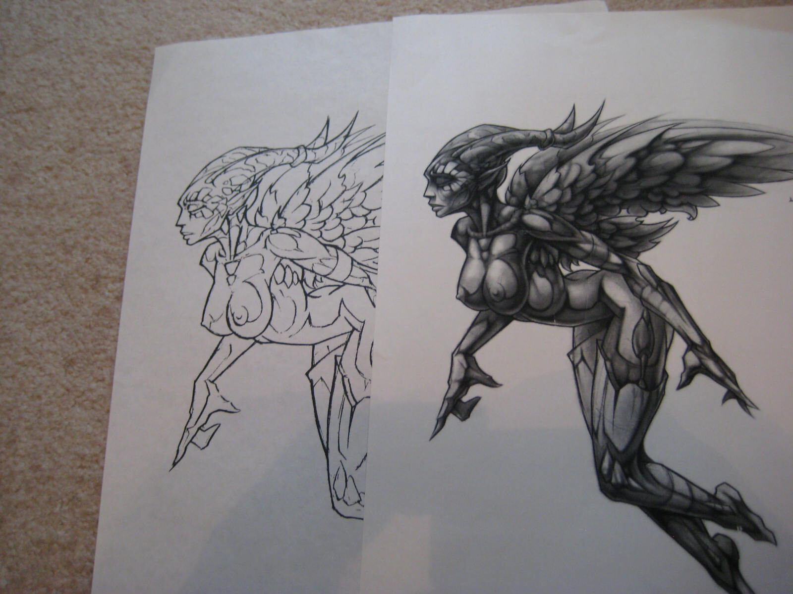 David Bollt Original Devil or Angel Tattoo Flash with Stencil