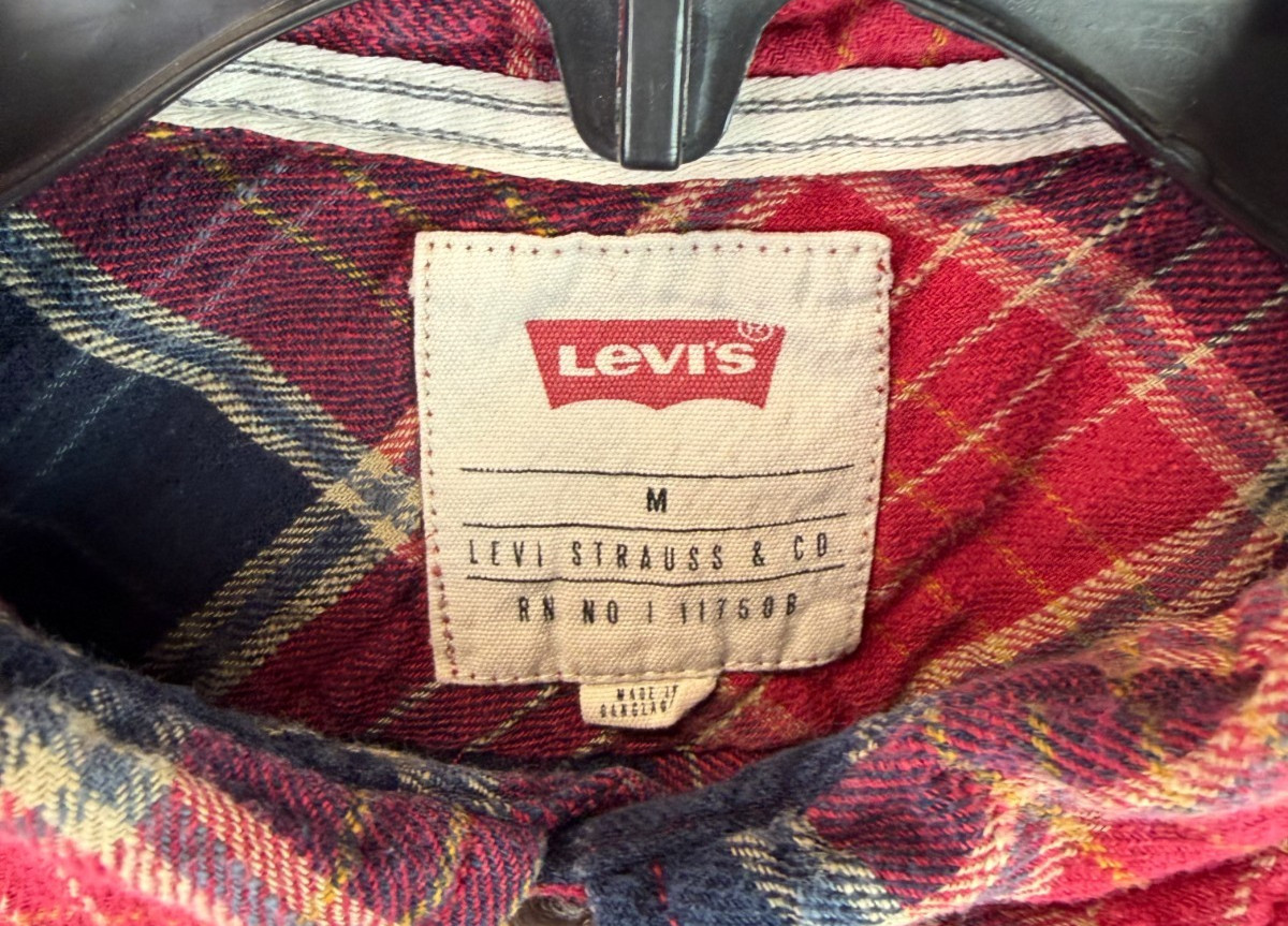 Levi's Red Blue Plaid Flanned Button Up Shirt Men's Size Medium