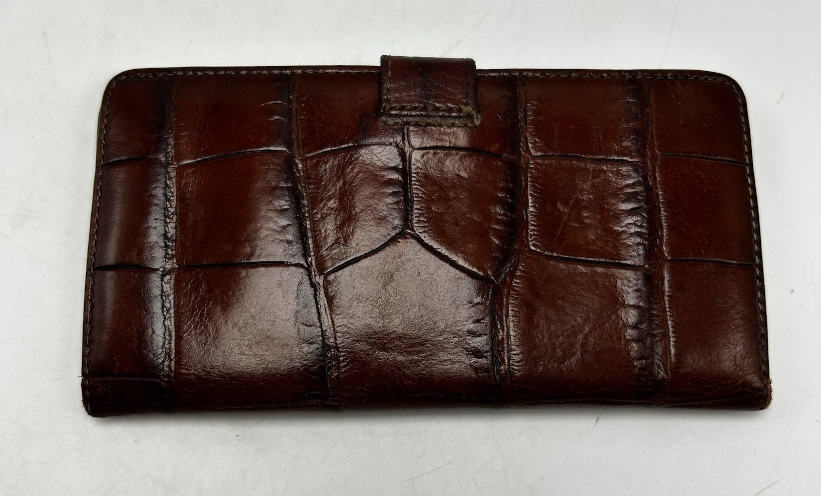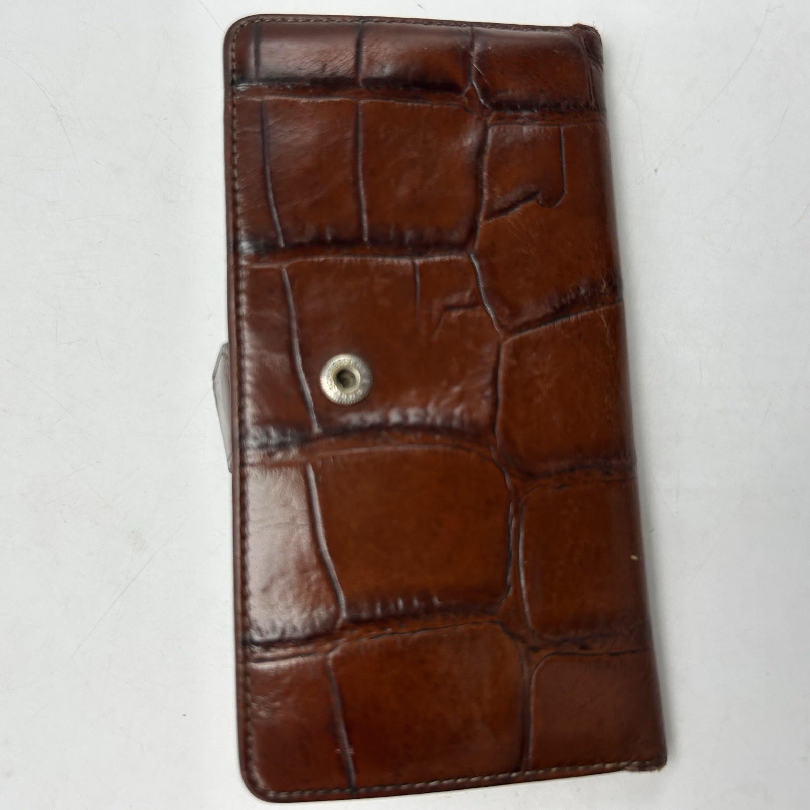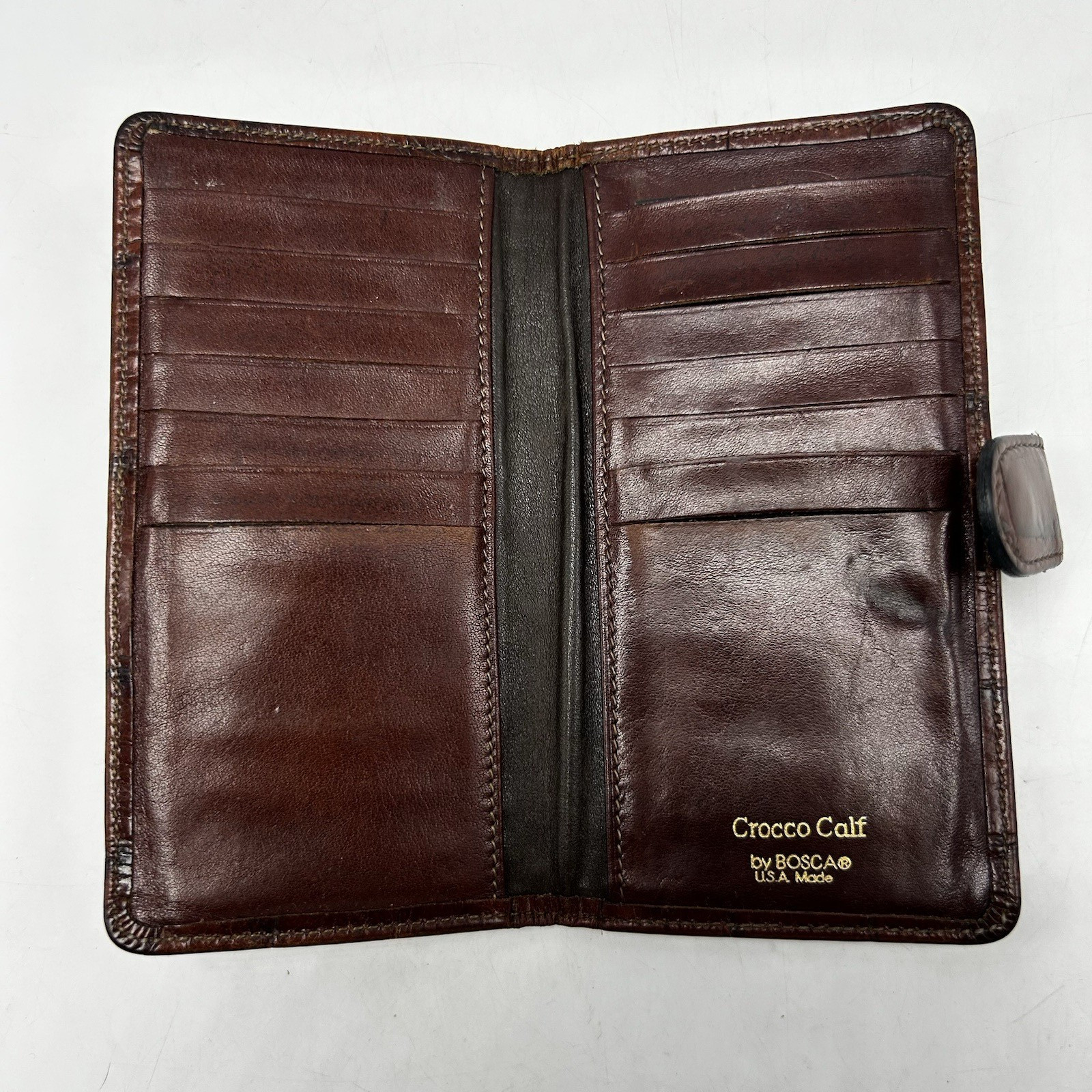 Bosca Wallet Brown Croc Embossed Leather 14 Slot Bifold Snap Old Money USA