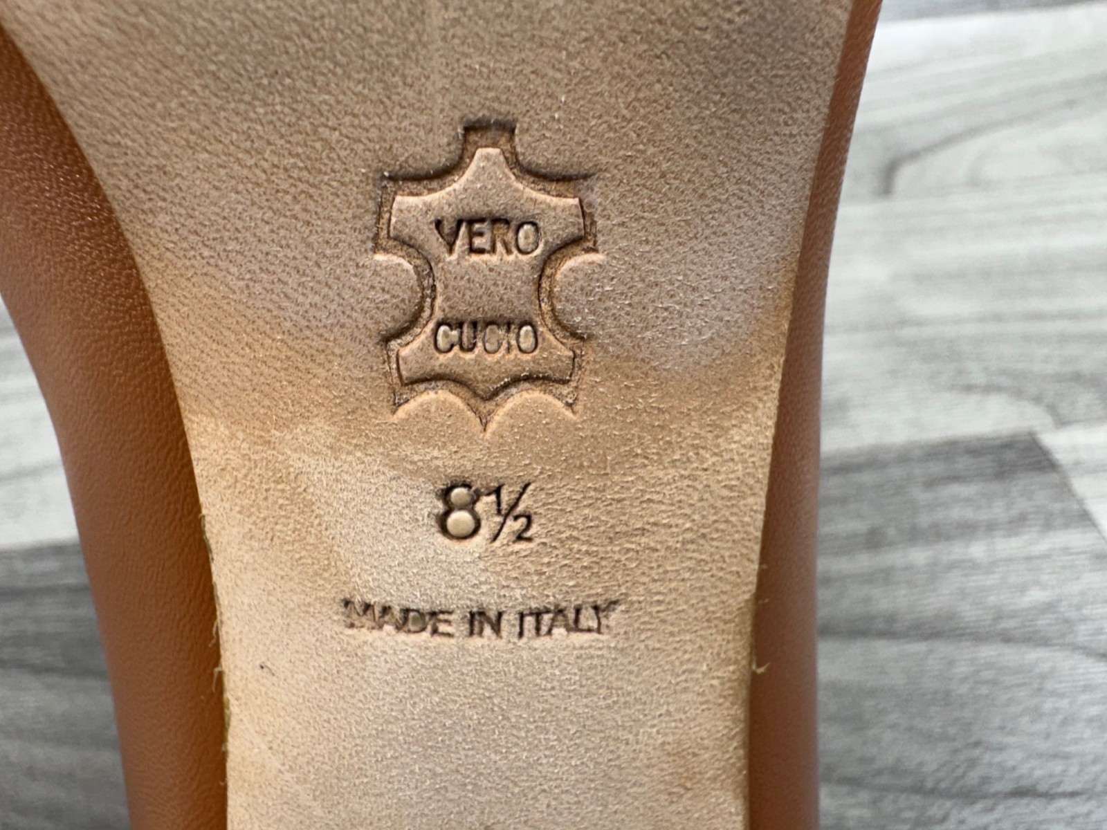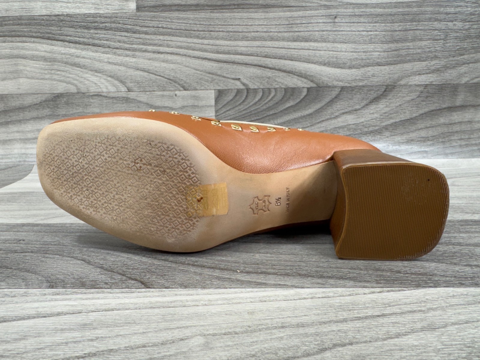 TORY BURCH HEELED LOAFER AMBRA DULCE DE LECHE LEATHER STUDDED SHOES 8 1/2 - TAN